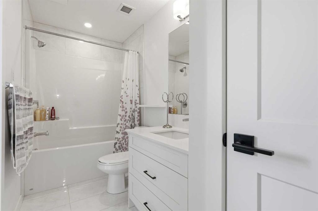 The primary bedroom retreat offers a large walk-in closet and a beautiful ensuite with dual sinks and a tiled shower. A spacious second bedroom and full 4-piece bathroom provide flexibility for guests, family, or a home office. You’ll also appreciate the convenient mudroom-style entry with a closet, plus stacked washer and dryer for added functionality.