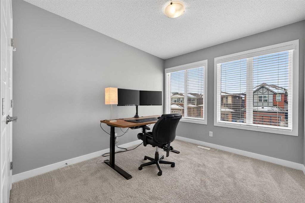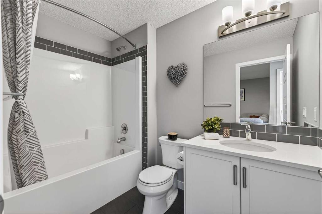 A duplex that doesn’t feel like one, thanks to a layout you don’t often find. With a bonus room upstairs and over 1,500 sqft, this one stands out right away. Built in 2018, this home offers the space, functionality, and flexibility that many buyers hope to find… but rarely do in this price range. Step inside to a bright, open-concept main floor with 9ft ceilings throughout, where the kitchen, dining, and living areas come together seamlessly, creating an amazing space to entertain and for everyone to feel connected. The kitchen is both stylish and practical, complete with quartz countertops, stainless steel appliances, an oversized central island, under-cabinet lighting, a classic subway tile backsplash, and an amazing walk-in pantry for added storage. Upstairs is where this home truly separates itself. In addition to three generously sized bedrooms, you’ll find a bonus room! A feature not often available in similar duplex layouts. Whether you need a home office, playroom, or additional lounge space, this flexible area adds real everyday value. You’ll also appreciate the convenience of side-by-side upper-floor laundry, along with a well-appointed primary bedroom featuring a large walk-in closet and its own ensuite, with a shower. The two additional bedrooms are positioned at the front of the home, providing added privacy for the primary, and are both a great size for kids, guests, or whatever suits your needs. These bedrooms share a full bathroom complete with a tub. The undeveloped basement offers excellent future potential and is already being enjoyed as a gym and hangout space. It also features hot water on demand and is roughed-in for a future bathroom, giving you the option to expand and add value over time. Outside, the low-maintenance composite deck with metal railings creates the perfect setting for summer evenings, while the fenced backyard offers just the right amount of space for kids, pets, or entertaining, without the upkeep of a larger lot. Aspen columnar trees were planted last summer and will continue to mature, offering added privacy as they fill in through the spring and summer, along with beautiful colour in the fall. The single attached garage is drywalled, insulated, and painted, and is currently set up as a functional workshop and storage space, plus there is additional driveway parking. Located within walking distance to scenic ponds and pathways, and just minutes to Deerfoot Trail for an easy commute into Calgary, this home offers a really convenient lifestyle. You’re also close to amenities like CrossIron Mills, along with a pump track over in Lanark Landing, plus all the everyday shopping, dining, and services Airdrie has to offer. With a layout that just makes sense, modern finishes throughout, and a location that offers both lifestyle and convenience, this home delivers exceptional value in today’s market.