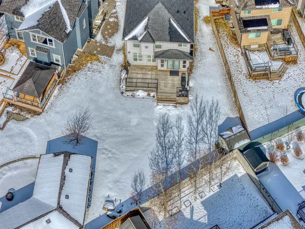 Style, space, and sophistication perfectly describe this exquisite home. The moment you enter, a spectacular view opens before you. The spacious foyer features an open to above ceiling, leading into a bright main floor with high ceilings, hardwood floors and numerous windows that bathe the home in natural light. Elegant wooden railings lead to the second floor, while a generously sized flex area offers the versatility to suit any family’s needs. The kitchen is a chef’s delight, featuring dark stained cabinetry, a gas range, quartz countertops, a walk through pantry and a breakfast bar for casual dining. It flows seamlessly into the spacious dining area and inviting living room, both perfectly positioned along the back of the home where an impressive wall of windows captures sunlight throughout the day. The living room serves as a cozy focal point, centered around a beautiful gas fireplace. From the dining area, glass doors open onto the expansive southeast facing deck, overlooking the sprawling backyard, an ideal setting for outdoor dining, entertaining guests or simply enjoying the sunshine and open space. Upstairs, the thoughtful layout continues with a blend of comfort and functionality. Across from the stairwell, a charming seating nook with a built-in bench and an elegant arched window creates a perfect reading escape. Just beside it, a compact workspace provides a practical area for studying or working from home, while a conveniently located laundry room adds everyday ease. This level also features two generously sized bedrooms, one of which is highlighted by an oversized window that fills the room with natural light, along with an additional 4 piece bathroom. At the center of the upper floor is a spacious bonus room overlooking the soaring open to above foyer, offering a bright and airy gathering space for the whole family. The impressive primary suite serves as a private retreat, complete with its own gas fireplace. The spa-inspired ensuite features his-and-hers vanities with quartz countertops, a dedicated makeup station, a corner soaker tub, and a large walk-in closet. The fully finished basement expands the living space further, offering a large recreation room perfect for movie nights or a home gym, along with an additional bedroom and full bathroom for guests or extended family. The home is equipped with a built-in sound system with in-ceiling and outdoor speakers, plus a tankless water heater installed just three years ago. Ideally situated, this home is within walking distance of Holy Child School (K–9), close to Ron Southern School (K–6) and Complexe scolaire francophone de Silverado (a Francophone school Grade K–12)., making the morning routine a breeze for families. A short drive brings you to the Somerset LRT Station, the YMCA, Spruce Meadows, and Shawnessy Plaza, with quick access to Stoney Trail for an easy commute.