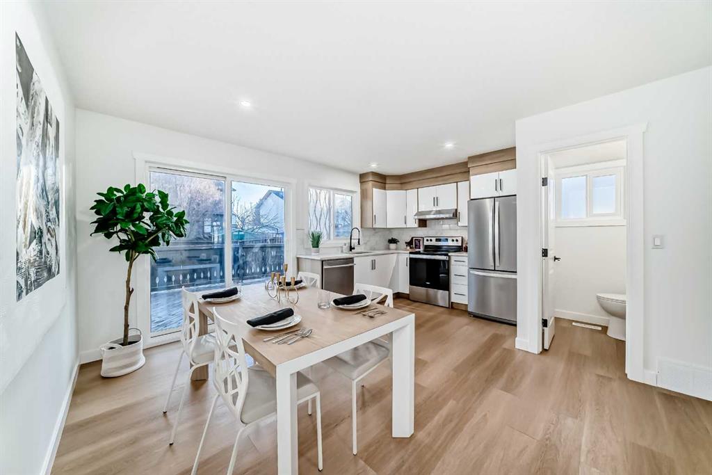 From the moment you step inside, the home feels bright, fresh, and inviting. The main floor offers a comfortable and functional layout designed for everyday living. Large windows allow natural light to pour into the living space while offering clear views of the green space across the street. The fully renovated kitchen is both stylish and practical, featuring brand new appliances, modern cabinetry, and updated finishes that make cooking and entertaining effortless. The dining area sits conveniently beside the kitchen, creating a natural gathering space for family meals, celebrations, or hosting guests.