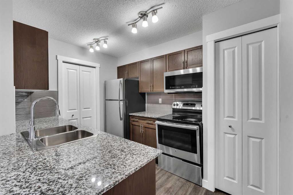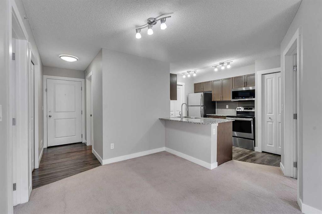 Welcome home to this bright, freshly painted and beautifully designed 2-bedroom, 2-bathroom condo in an ultra-quiet, 8-storey concrete building—offering excellent sound insulation so you won’t hear disturbances from nearby units. Thoughtfully laid out with bedrooms on opposite sides, the floor plan provides outstanding privacy and balance, ideal for shared living, a dedicated home office, or a young family. The in-suite laundry, conveniently located off the kitchen, adds everyday ease. The modern kitchen is both stylish and functional, featuring quartz countertops, stainless steel appliances, and soft-close cabinetry—perfect for cooking, hosting, or enjoying quiet evenings at home. The open living area flows effortlessly onto a west-facing balcony, ideal for enjoying afternoon sun and beautiful evening sunsets. This home also includes titled underground parking and access to a fantastic rooftop patio offering expansive community views—an inviting space to relax, unwind, or gather with friends. Emerald Sky is a well-maintained, pet-friendly (with approval) building that backs onto parks and green space, creating a calm and connected atmosphere. Set within an established yet growing community, you’re just steps from the future Symons Valley Park, a planned 16-acre destination with sports fields, playgrounds, skating rinks, walking paths, and year-round gathering spaces. Enjoy easy access to the amenities of Beacon Hill, Creekside, and Sage Hill Plaza, offering everyday conveniences including Walmart, banks, shops, restaurants, and fitness studios. With quick access to Stoney Trail and Shaganappi Trail, everything you need is close at hand. Comfort, connection, and lifestyle come together here—this is a place you’ll truly love coming home to.