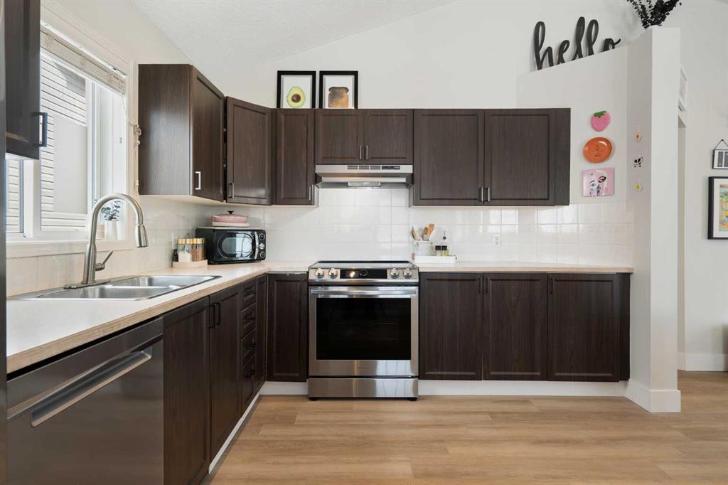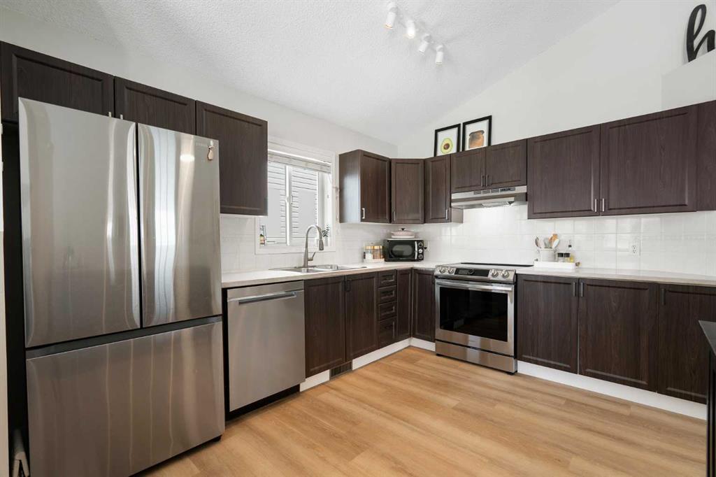 ** Open House Saturday, April 4, 12-2 pm ** Located on a quiet street in Riverbend, this bright, move-in-ready home offers over 2,000 sq. ft. of developed living space. The home is noticably brighter than your average home, with vaulted ceilings and large windows that make the home feel airy and vibrant. The home was recently finished in luxury vinyl plank flooring throughout (2026), with new beautiful and waterproof tile flooring at the entry (2026). The main floor features 3 bedrooms, a newly remodeled full bath (2022), and a spacious kitchen with stainless steel appliances including a new refrigerator, range and dishwasher (2021), a new range hood (2026), and new lighting (2026). The primary bedroom includes a walk-in closet, fresh paint (2021), and a full height bay window. The two other well-sized bedrooms have great closet space. The finished lower level has a separate entrance, a fourth bedroom, a second full bath, and a cozy fireplace. This level also includes a bright flex room/playroom with a window and impressive storage space, and new washer dryer in the utility room (2021). Outside, the sunny southeast-facing backyard is low-maintenance featuring new synthetic grass, patio stones and a deck with pergola with canvas overlay (2023) for enjoying long summer days. The property includes an extra-tall double detached garage, great for additional storage, and is backing a paved lane, meaning less dust and mud-free throughout the year. You’ll also benefit from street parking at the front which, being on a quiet residential street, is never crowded. This adorable home offers extensive access to the city's Bow River pathway system, providing residents with scenic, multi-use trails that connect to the broader regional network. With some of the best access to both Deerfoot and Glenmore, you’ll find living in Riverbend not only saves you time but makes you feel quickly at home in this quiet and established family community.