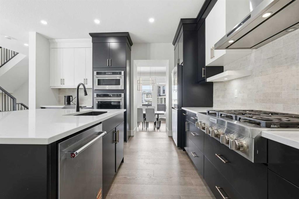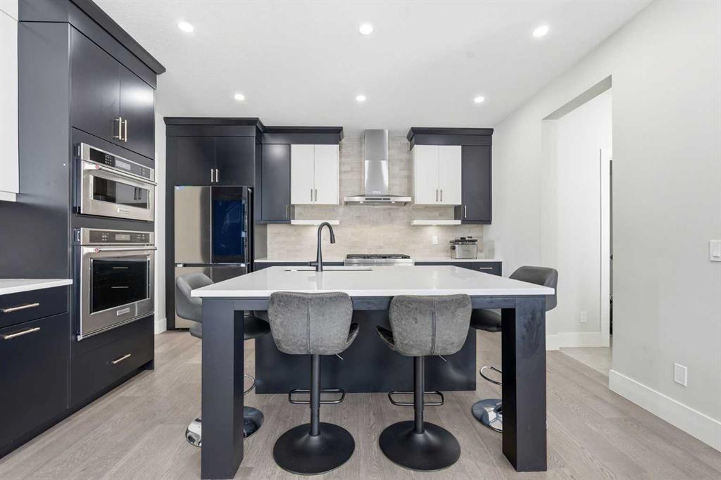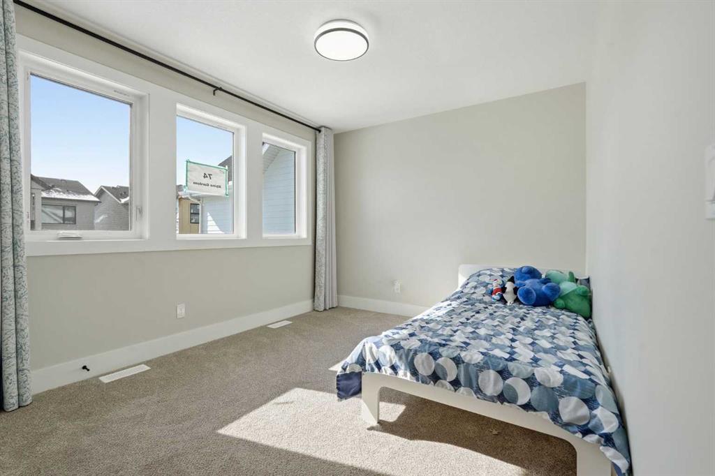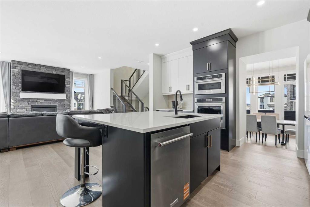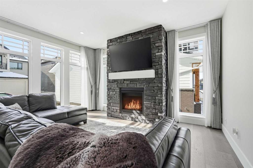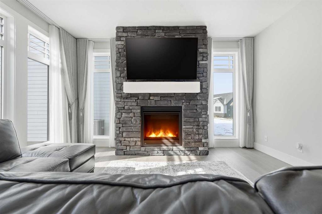 Discover your dream home in this 2025 build Foursquare style design, blending timeless character with a practical layout, thoughtful details, and PARK-FRONT Living! Located in one of Calgary's newest community, Alpine Park, this home features a symmetrical design, 5 BEDROOMS and a welcoming covered front porch, making it a perfect spot to relax while watching the kids play in the front park. With over 3,500 sf of finished space, this layout is both functional and beautiful. The exterior is finished with HARDIE BOARD siding and brick, while inside, warm hardwood floors, and elevated ceilings bring comfort and style together. The kitchen is fitted with quartz counters, a spacious potential walk-through pantry, stainless steel appliances including a GAS RANGE & built in oven, it flows seamlessly into the living room featuring expansive windows allowing the space to fill with natural light, highlighted by a stunning brick wall and gas fireplace. The semi-formal dining room with 10' ceilings makes for a more intimate overall dining experience with family/friends. Rounding out the main floor is the stunning office/flex room with four large windows with great views of the park. Upstairs offers three generously sized bedrooms, and a bonus room - for gathering or retreat. The primary suite is a standout, complete with a freestanding tub, large tile shower, double vanities. It also features an impressive walk-in closet, and a thoughtful layout that adds everyday ease and flow. The fully finished basement expands the living space with two additional spacious bedrooms, 4pc bathroom, and a rec/media room. Additional highlights include a side covered porch w/ bbq gas line, REAR ATTACHED DOUBLE GARAGE, and the Alberta New Home Warranty. Plus easy access to the mountains, via Stoney trail, and just minutes from Costco, shopping, parks, schools, dining, and scenic walking paths!