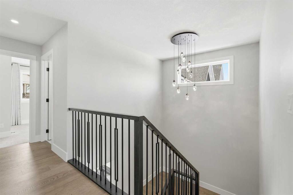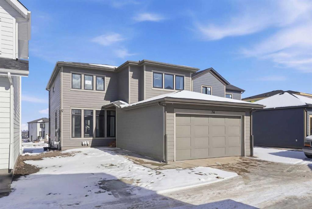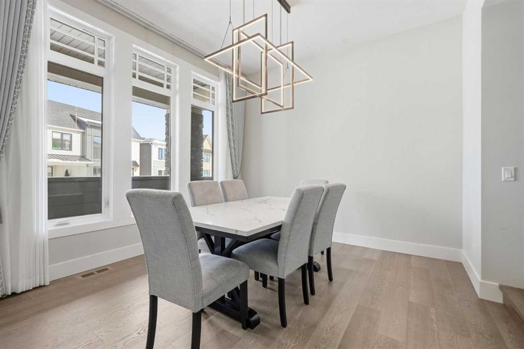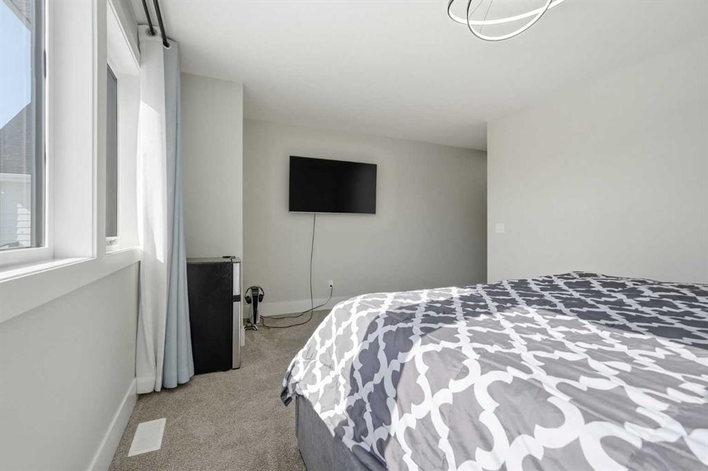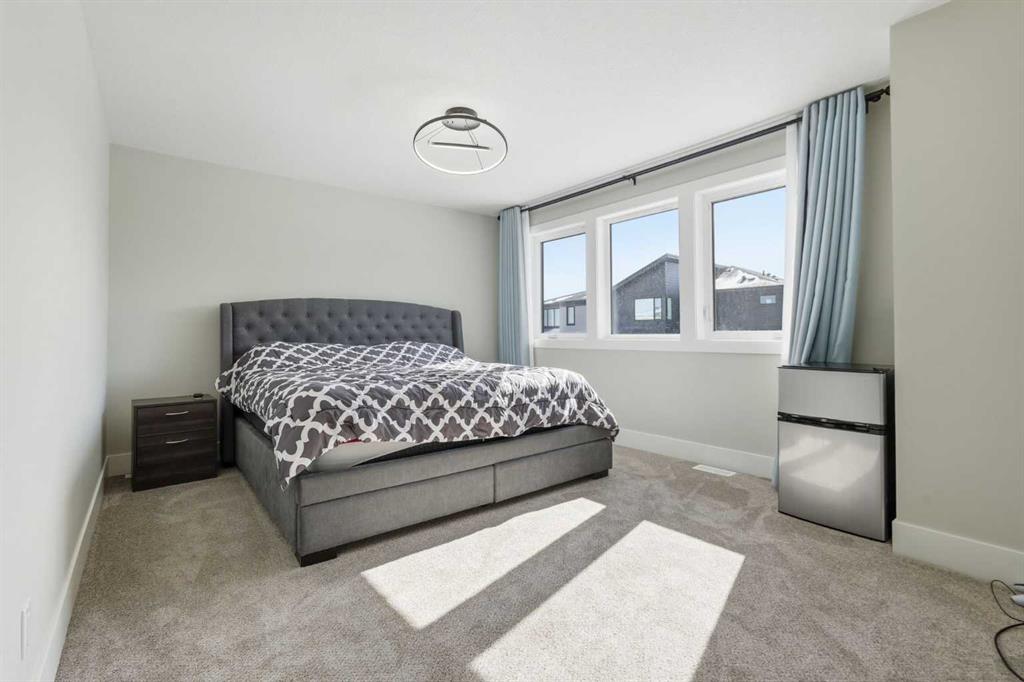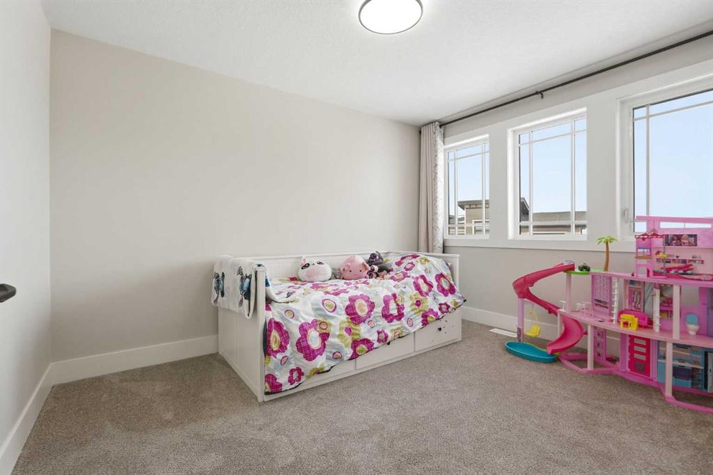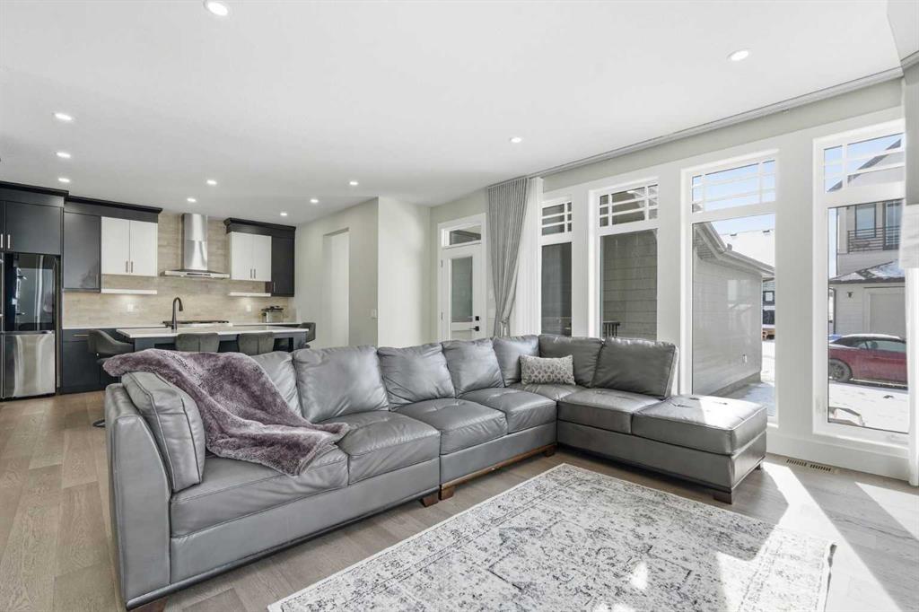 Discover your dream home in this 2025 build Foursquare style design, blending timeless character with a practical layout, thoughtful details, and PARK-FRONT Living! Located in one of Calgary's newest community, Alpine Park, this home features a symmetrical design, 5 BEDROOMS and a welcoming covered front porch, making it a perfect spot to relax while watching the kids play in the front park. With over 3,500 sf of finished space, this layout is both functional and beautiful. The exterior is finished with HARDIE BOARD siding and brick, while inside, warm hardwood floors, and elevated ceilings bring comfort and style together. The kitchen is fitted with quartz counters, a spacious potential walk-through pantry, stainless steel appliances including a GAS RANGE & built in oven, it flows seamlessly into the living room featuring expansive windows allowing the space to fill with natural light, highlighted by a stunning brick wall and gas fireplace. The semi-formal dining room with 10' ceilings makes for a more intimate overall dining experience with family/friends. Rounding out the main floor is the stunning office/flex room with four large windows with great views of the park. Upstairs offers three generously sized bedrooms, and a bonus room - for gathering or retreat. The primary suite is a standout, complete with a freestanding tub, large tile shower, double vanities. It also features an impressive walk-in closet, and a thoughtful layout that adds everyday ease and flow. The fully finished basement expands the living space with two additional spacious bedrooms, 4pc bathroom, and a rec/media room. Additional highlights include a side covered porch w/ bbq gas line, REAR ATTACHED DOUBLE GARAGE, and the Alberta New Home Warranty. Plus easy access to the mountains, via Stoney trail, and just minutes from Costco, shopping, parks, schools, dining, and scenic walking paths!