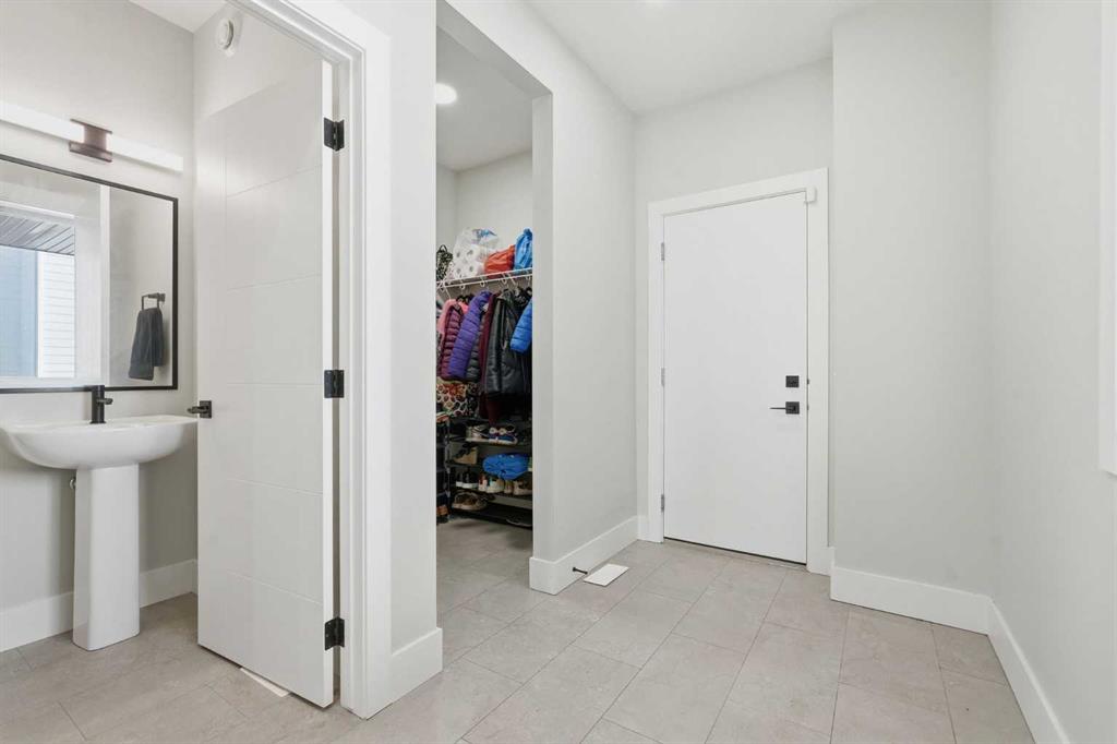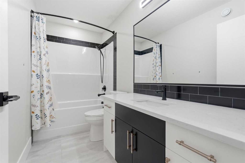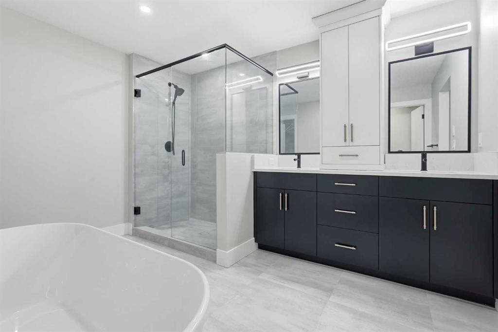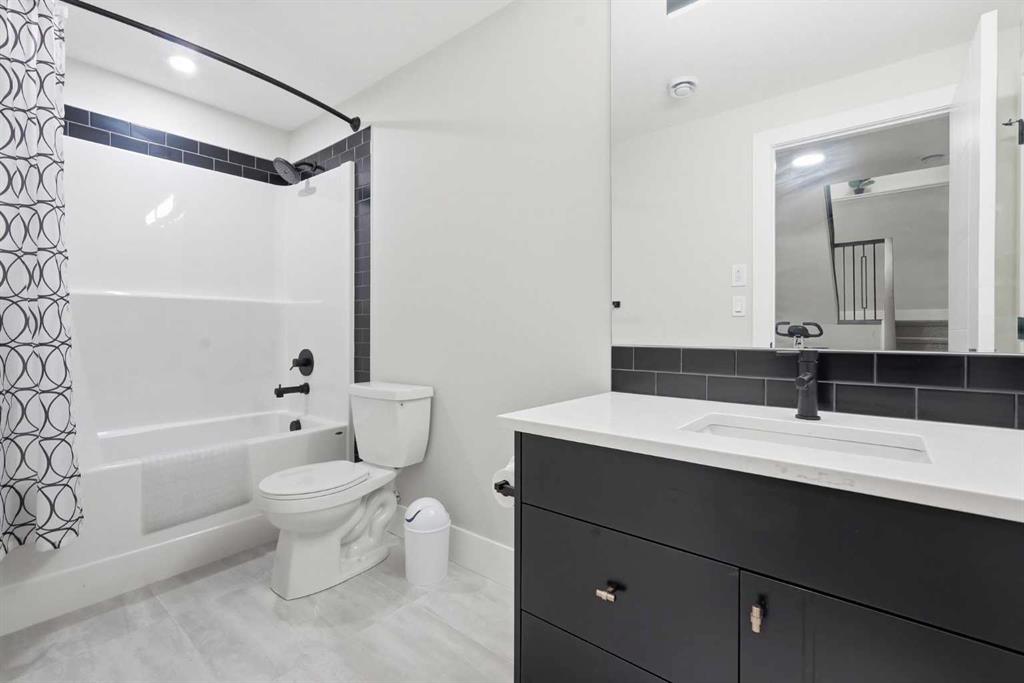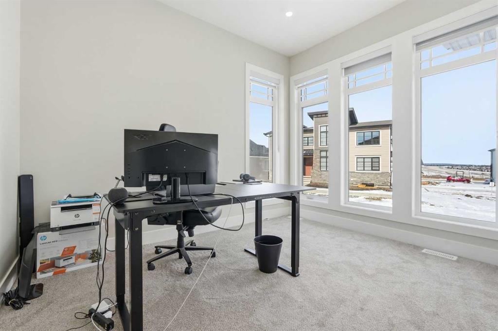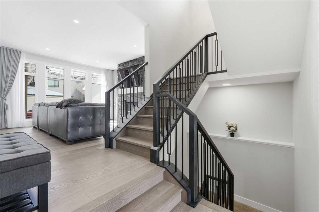Discover your dream home in this 2025 build Foursquare style design, blending timeless character with a practical layout, thoughtful details, and PARK-FRONT Living! Located in one of Calgary's newest community, Alpine Park, this home features a symmetrical design, 5 BEDROOMS and a welcoming covered front porch, making it a perfect spot to relax while watching the kids play in the front park. With over 3,500 sf of finished space, this layout is both functional and beautiful. The exterior is finished with HARDIE BOARD siding and brick, while inside, warm hardwood floors, and elevated ceilings bring comfort and style together. The kitchen is fitted with quartz counters, a spacious potential walk-through pantry, stainless steel appliances including a GAS RANGE & built in oven, it flows seamlessly into the living room featuring expansive windows allowing the space to fill with natural light, highlighted by a stunning brick wall and gas fireplace. The semi-formal dining room with 10' ceilings makes for a more intimate overall dining experience with family/friends. Rounding out the main floor is the stunning office/flex room with four large windows with great views of the park. Upstairs offers three generously sized bedrooms, and a bonus room - for gathering or retreat. The primary suite is a standout, complete with a freestanding tub, large tile shower, double vanities. It also features an impressive walk-in closet, and a thoughtful layout that adds everyday ease and flow. The fully finished basement expands the living space with two additional spacious bedrooms, 4pc bathroom, and a rec/media room. Additional highlights include a side covered porch w/ bbq gas line, REAR ATTACHED DOUBLE GARAGE, and the Alberta New Home Warranty. Plus easy access to the mountains, via Stoney trail, and just minutes from Costco, shopping, parks, schools, dining, and scenic walking paths!
