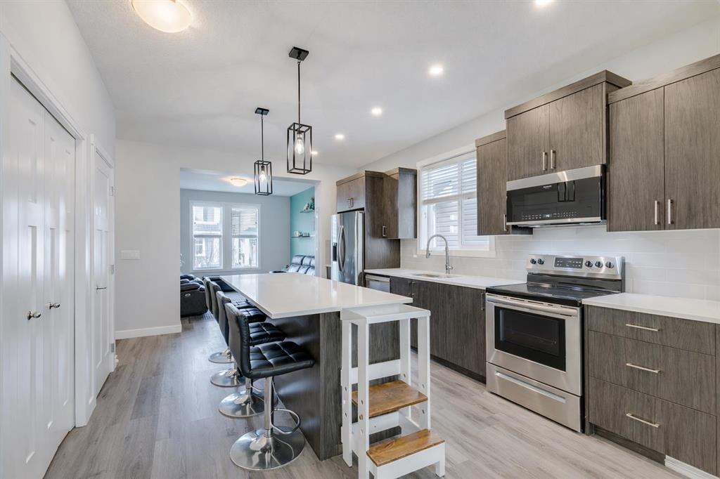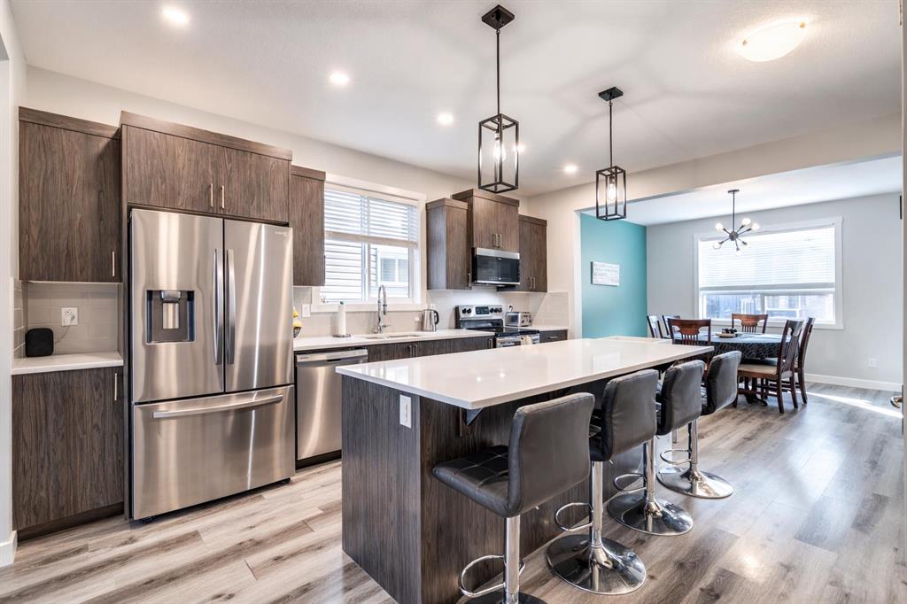 Welcome home! South Point is a thoughtfully planned neighbourhood with more than 12 acres dedicated to parks, trails and community amenities, including tennis and basketball courts, playgrounds, picnic areas and an off leash dog park. Commutes to Calgary are easily accessible too. Everything you need is within reach! From the moment you step inside, the main floor greets you with nine foot ceilings that add to the sense of space and brightness. The main floor living room flows into the kitchen and dining area that create a natural gathering place. A conveniently placed powder room completes this level. Additional upgrades you may miss as you're walking through; such as a solar panels, central air conditioning, toe kick vacuum in the kitchen, smart locks and light switches, a side entrance and more! Upstairs, you will find the primary bedroom that can easily fit a King sized bed and anything else you need! It has a walk in closet, and a spacious ensuite, so no more fighting for counter space! There are two more bedrooms on this level, perfect for growing families, or a home office. Finishing the upstairs, is the washer and dryer. along with a full bathroom as well! Heading downstairs, the developed basement extends the living space even further, offering a cozy area that can easily adapt to your needs. This level is complete with a wet bar, a four-piece bathroom with heated floors, a den and a bedroom. All tied together with a side entrance for even more flexibility. Outside, the south facing yard invites you to enjoy long summer evenings, backyard barbecues and space for kids or pets to play. The home is finished with an oversized double garage that includes heating, cooling and a separate electrical panel, offering excellent functionality for vehicles, storage or hobbies. Don't wait to make 429 South Point Glen home!