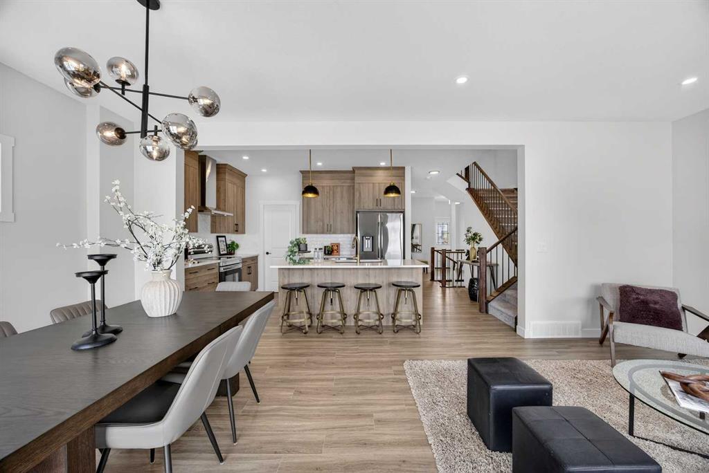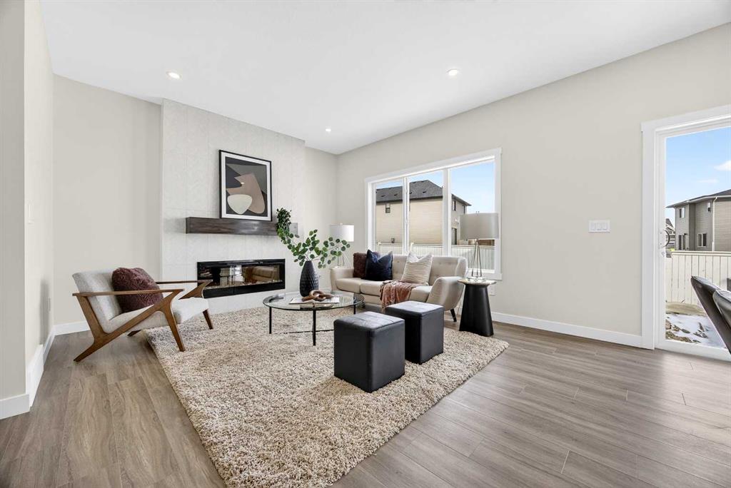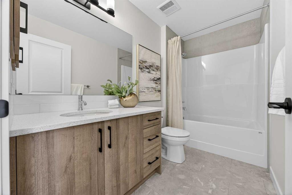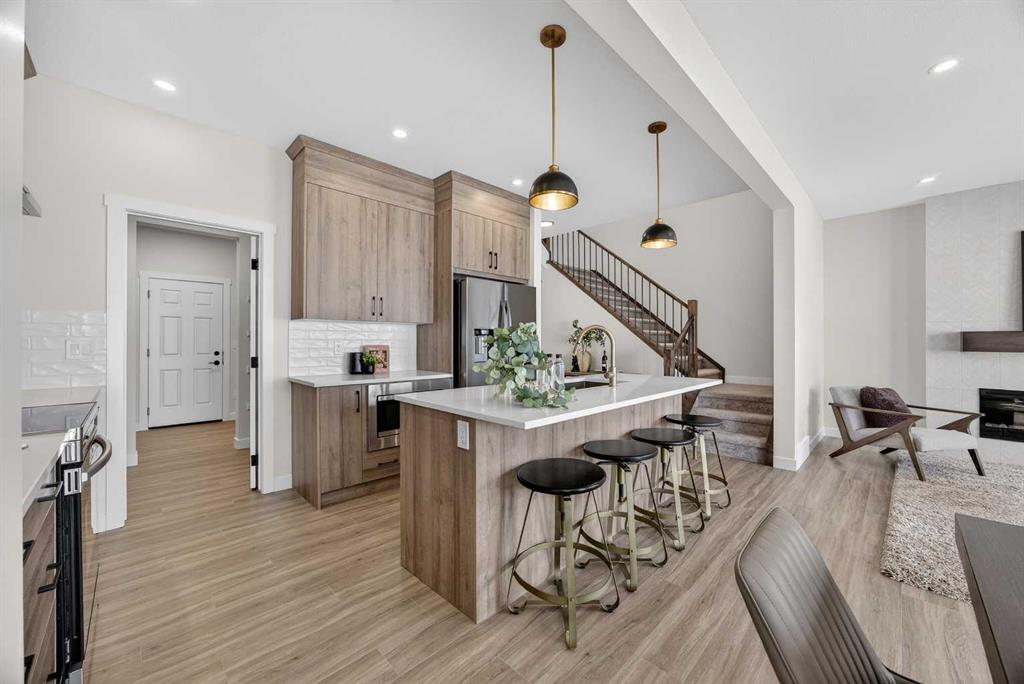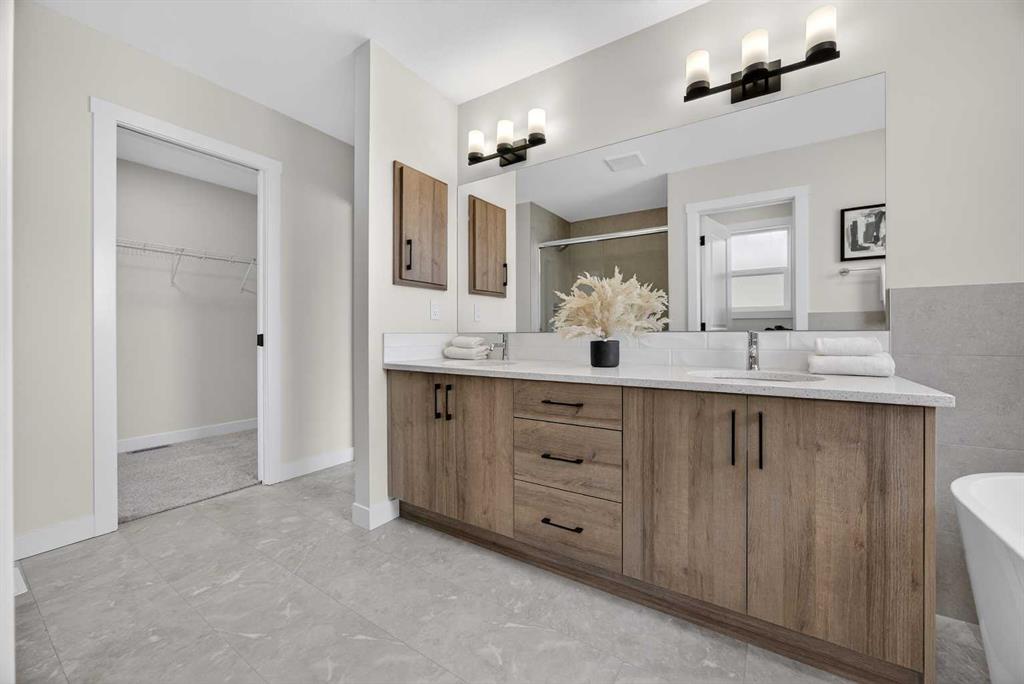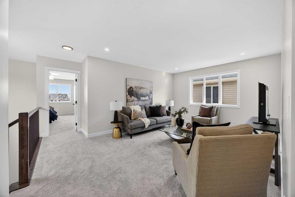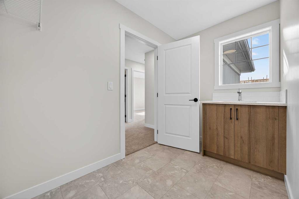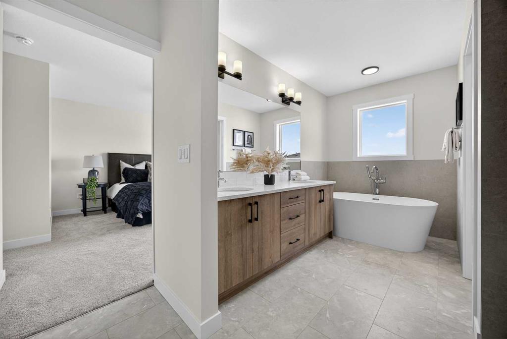 Welcome to the “Leo” a beautifully designed 3-bedroom, 2.5 bathroom brand new home offering over 2000 sq ft of finished living space. Step inside to a bright, inviting main floor featuring luxury vinyl plank flooring that spans the entire level and is complemented by 9-foot ceilings. The chef's kitchen showcases sleek cabinetry with stylish black hardware, paired with a crisp white tile backsplash, elegant quartz countertops, and stainless steel appliances. The living room features a stunning floor-to-ceiling tiled feature wall, creating a beautiful focal point. Adjacent to the living space, the dining area is ideal for entertaining and flows seamlessly to the outdoors. Completing the main floor is a practical mudroom just off the double-attached garage, a spacious pantry, and a convenient powder room. Upstairs, you'll find a central bonus room that provides separation between the primary suite and the secondary bedrooms, offering both comfort and privacy. The primary retreat is generously sized and features a spa-inspired ensuite with dual sinks, a relaxing soaker tub, and an oversized shower, as well as a truly impressive walk-in closet. A full bathroom complements two additional well-sized bedrooms, while the upstairs laundry room adds everyday convenience. The unfinished basement, with 9-foot ceilings, offers a blank canvas for your future development ideas. Bayview is a beautiful community with parks, benches and pathways that meander throughout the community and along the canals. Kids and adults alike will enjoy the outdoor basketball nets, gym, amphitheatre and tennis courts that will convert into a skating rink in the winter. Come and see all the amenities that Bayview has to offer for yourself! *RMS has been applied to construction drawings provided by the builder. Taxes to be assessed.
