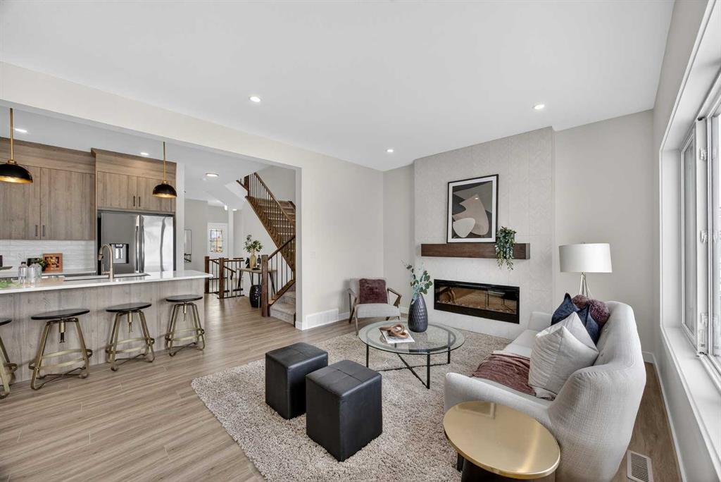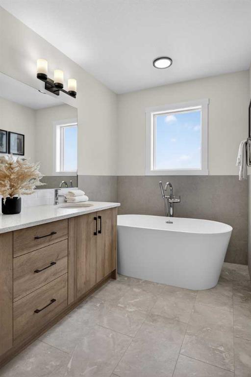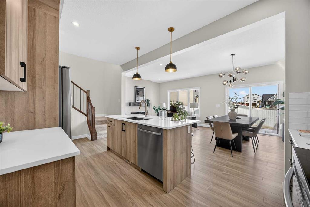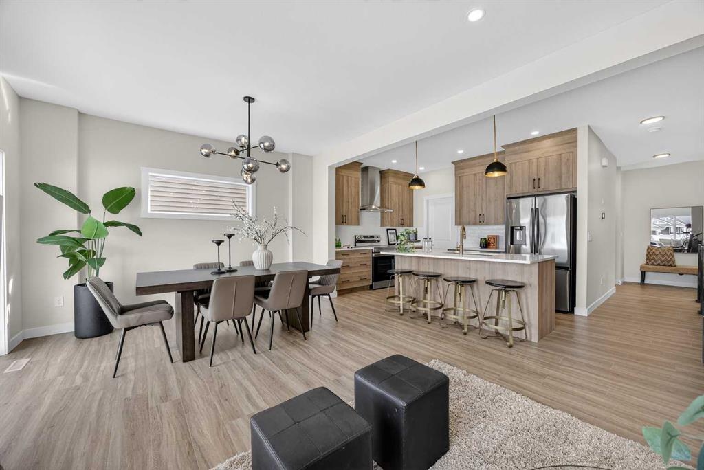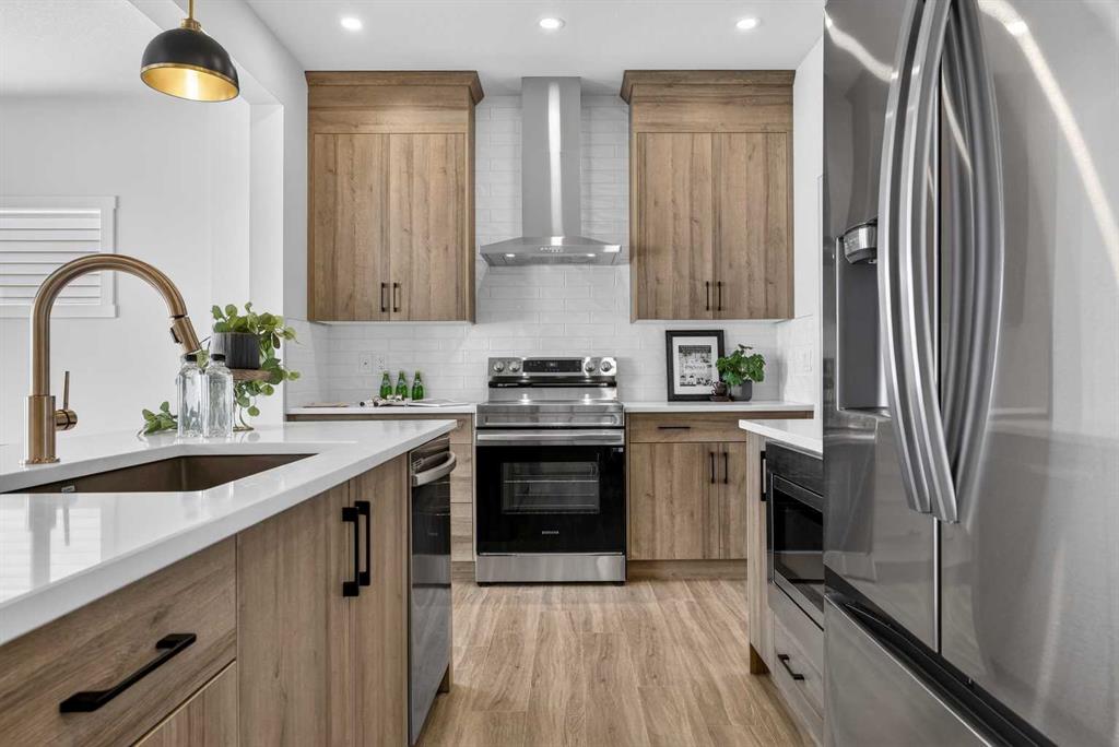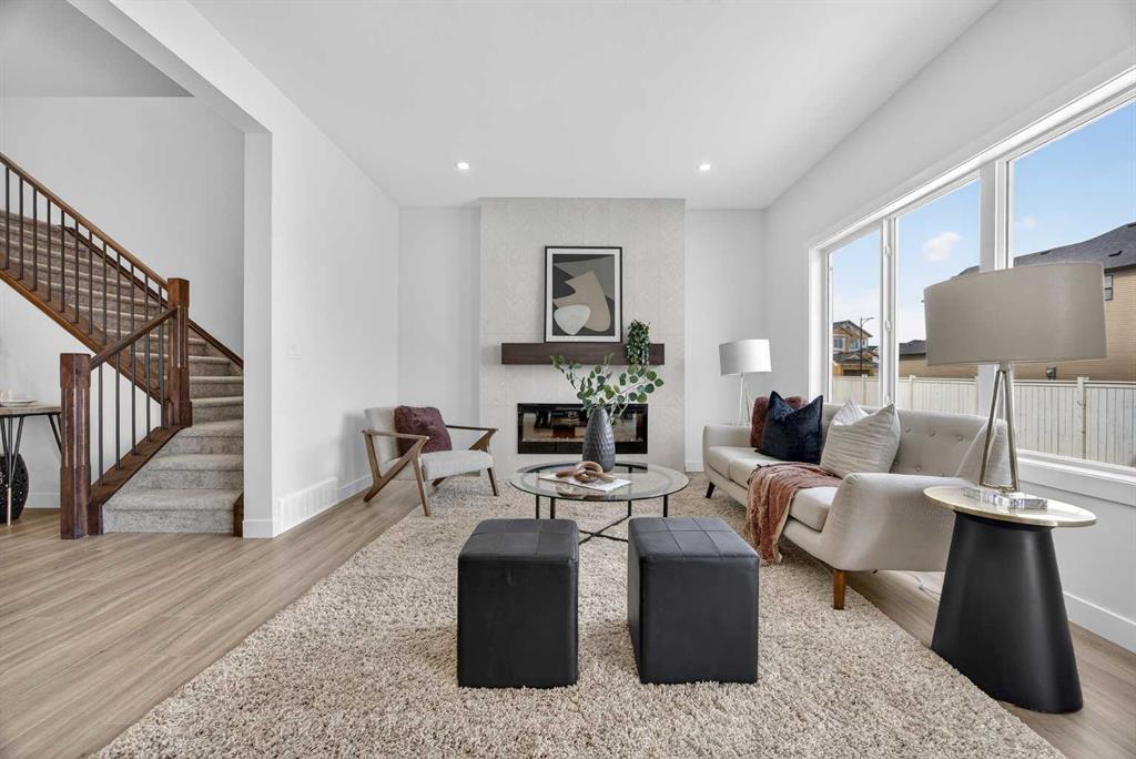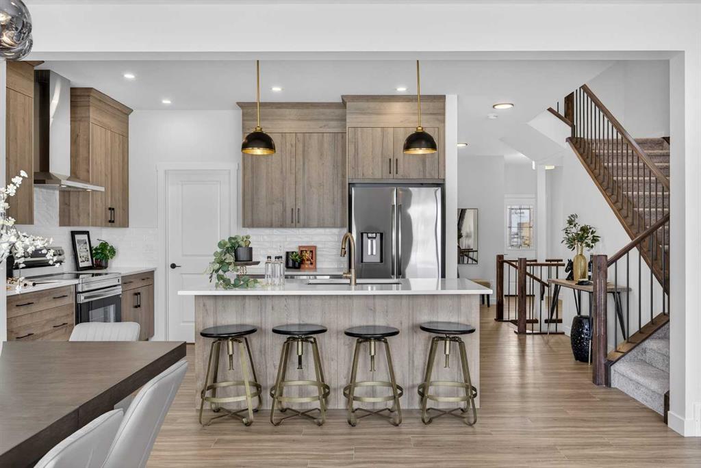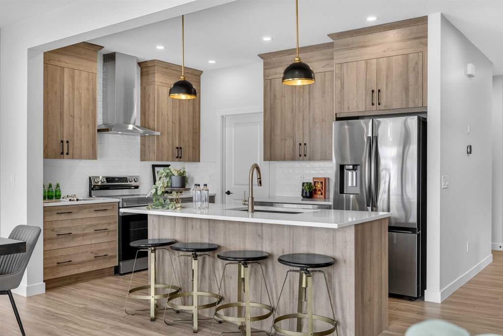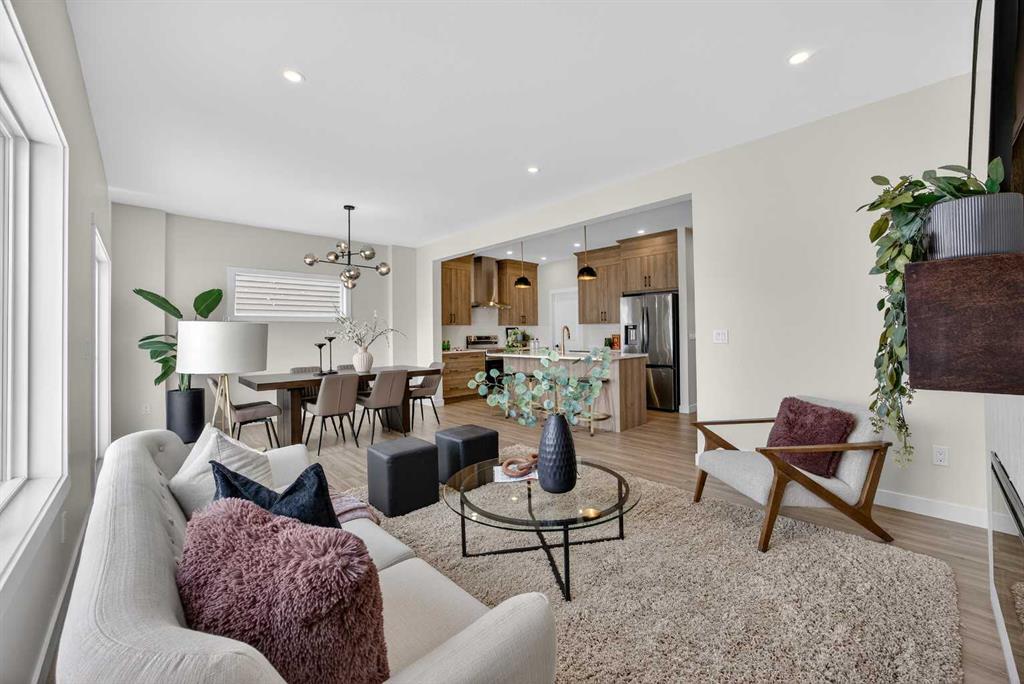 Welcome to the “Leo” a beautifully designed 3-bedroom, 2.5 bathroom brand new home offering over 2000 sq ft of finished living space. Step inside to a bright, inviting main floor featuring luxury vinyl plank flooring that spans the entire level and is complemented by 9-foot ceilings. The chef's kitchen showcases sleek cabinetry with stylish black hardware, paired with a crisp white tile backsplash, elegant quartz countertops, and stainless steel appliances. The living room features a stunning floor-to-ceiling tiled feature wall, creating a beautiful focal point. Adjacent to the living space, the dining area is ideal for entertaining and flows seamlessly to the outdoors. Completing the main floor is a practical mudroom just off the double-attached garage, a spacious pantry, and a convenient powder room. Upstairs, you'll find a central bonus room that provides separation between the primary suite and the secondary bedrooms, offering both comfort and privacy. The primary retreat is generously sized and features a spa-inspired ensuite with dual sinks, a relaxing soaker tub, and an oversized shower, as well as a truly impressive walk-in closet. A full bathroom complements two additional well-sized bedrooms, while the upstairs laundry room adds everyday convenience. The unfinished basement, with 9-foot ceilings, offers a blank canvas for your future development ideas. Bayview is a beautiful community with parks, benches and pathways that meander throughout the community and along the canals. Kids and adults alike will enjoy the outdoor basketball nets, gym, amphitheatre and tennis courts that will convert into a skating rink in the winter. Come and see all the amenities that Bayview has to offer for yourself! *RMS has been applied to construction drawings provided by the builder. Taxes to be assessed.