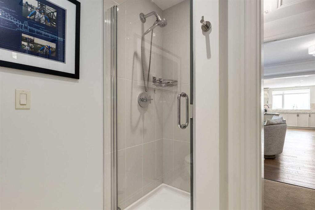 For some, luxury is an occasional indulgence. For others, it is a way of life. If every day luxury & refined living are what you desire, look no further than this outstanding CORNER suite at Champagne in Quarry Park. Offering 1631 SF of impeccably curated living space, with 9-foot ceilings that are flooded with natural light & serene tree top views. Every detail has been thoughtfully considered & the spacious floor plan is sure to delight. A gracious front entrance welcomes you into the suite, & offers a walk-in closet and custom built in cabinetry for your storage needs. The spacious living area with hardwood flooring throughout is sure to delight - a cozy fireplace surrounded by built-ins anchors the living room, sunny & bright dining area with windows on 2 sides is ready to host your family gatherings and provides patio door access to the east facing balcony. The show-stopping kitchen is a chefs dream – expansive island & granite counters, full tile backsplash, luxurious stainless steel appliances including a gas stove & new LG fridge with water/ice dispenser, and an abundance of cabinets providing ample storage including wire pull out racks – so convenient! The serene primary retreat is generously proportioned & offers space for a king-sized bedroom suite & sitting area, while the 5 piece ensuite bath delivers a spa-like experience worthy of a luxury hotel – featuring a relaxing soaking tub, separate shower, granite counters & dual sinks. The walk in closet features a new custom closet system. Second bedroom, equally well-appointed, provides dual aspect windows with beautiful river views & a 3 piece ensuite bath. Additional features include central air conditioning, coffered ceilings, estate millwork, solid core doors, new LG wash/dryer tower with steam function, new composite decking installed on the balcony, new carpet in both bedrooms, Hunter Douglas blinds throughout (black out blinds in the bedrooms), custom drapery in this non-smoking, pet-free home. TWO titled, side by side underground parking stalls are included, located very close to the elevator, a rare & valuable convenience. Also included is a titled storage locker on the same level as the parking spots. You’ll appreciate the peace of mind that comes with Champagne’s reputation for exceptional maintenance & inherently quiet concrete construction. Additional building features include 2 car wash bays, bicycle storage, plenty of visitor parking & a peaceful courtyard. Plus it’s pet friending – 2 dogs or cats or combo of both, with board approval. The location can’t be beat! Walk to Carburn Park, The Market at Quarry Park offers great amenities including Starbucks, The Park and Original Joe’s restaurants & Co-Op grocery, the Remington YMCA is just around the corner and of course the extensive river pathway system is just outside your door. Easy access to major traffic routes and numerous SE Calgary amenities. This unit shows like new and must be viewed in person to be fully appreciated!