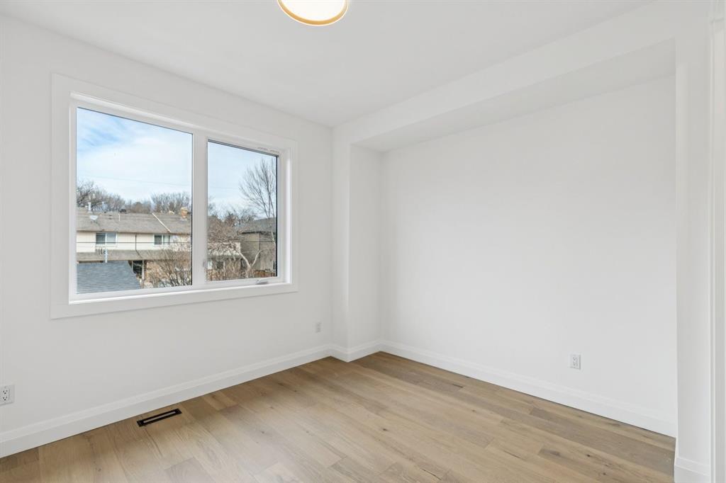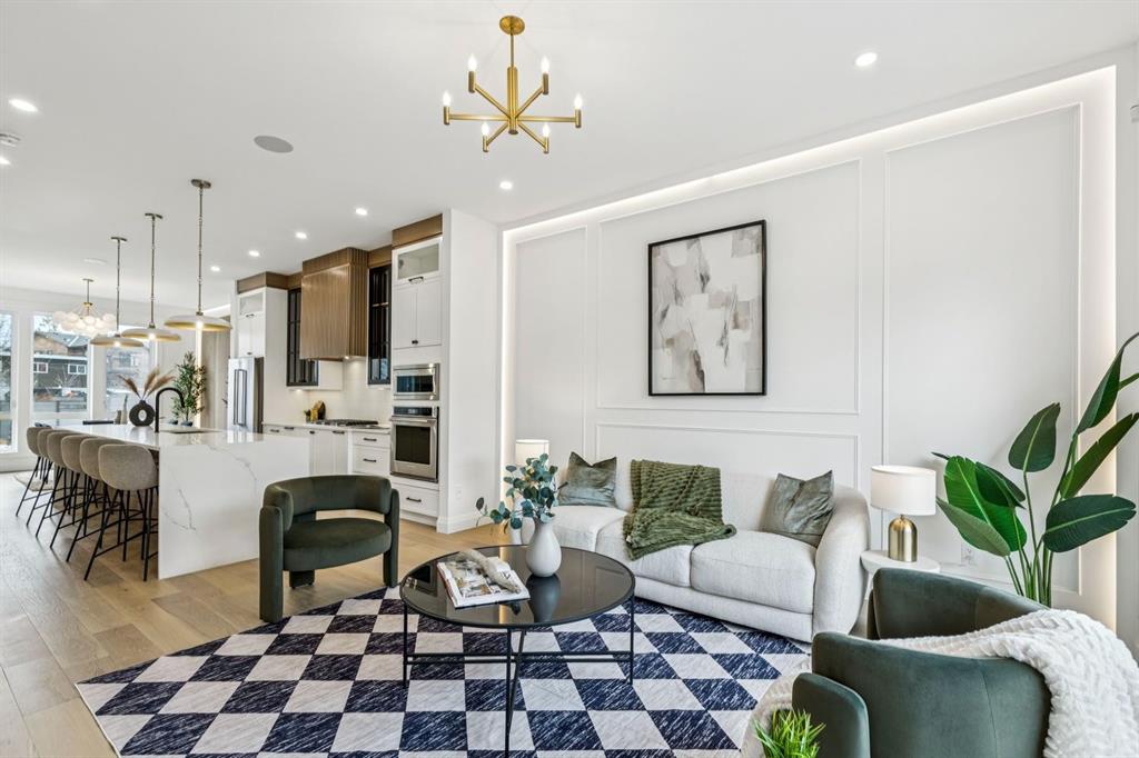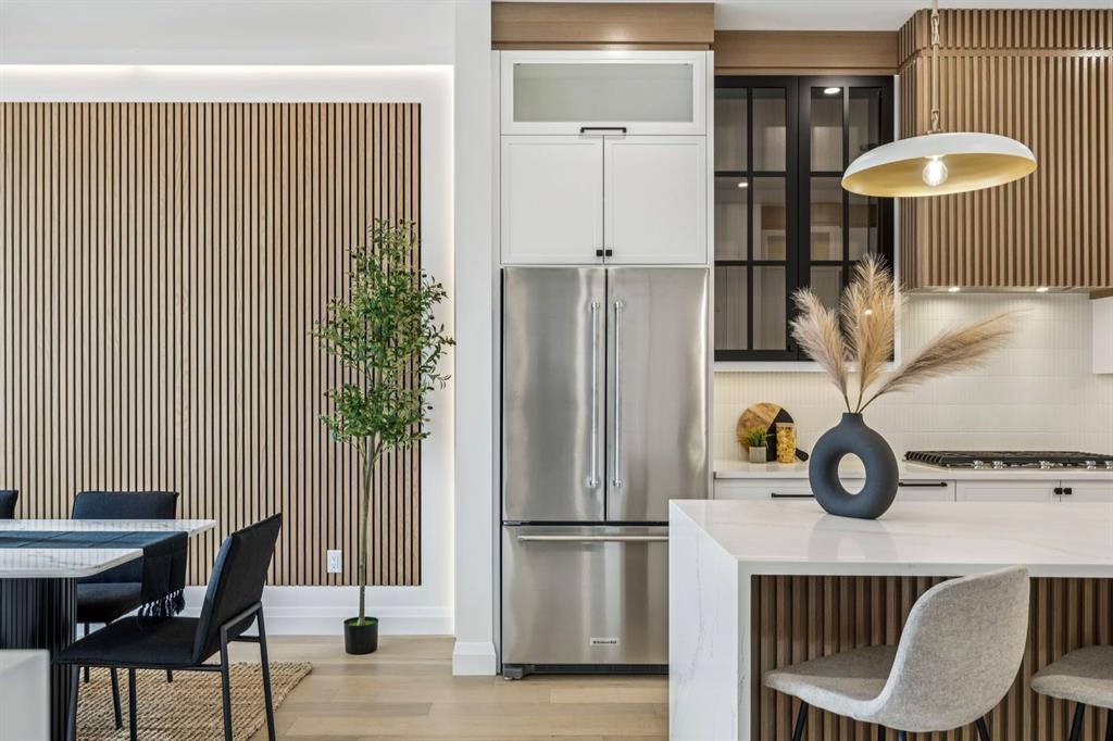 Situated just steps from the Bow River in the highly sought after community of Parkdale, this sophisticated modern residence offers over 3,600 sq ft of beautifully curated living space, blending elevated design with exceptional functionality. The bright, open concept main floor welcomes you with a spacious entry and a stunning front dining area, highlighted by an illuminated feature wall that adds warmth and architectural interest. A glass enclosed office provides a perfect work-from-home setting, while the heart of the home, an exquisite designer kitchen, impresses with an expansive 10’ quartz waterfall island, built-in wall oven and microwave, gas cooktop, and sleek cabinetry. Striking glass panelled black fronts anchor the cooking space, complemented by crisp white shaker cabinetry for a refined modern aesthetic. A thoughtfully designed pantry with bar area and beverage fridge enhances both form and function. At the rear, the airy living room with a contemporary gas fireplace opens effortlessly to the west facing backyard and low maintenance deck through sliding glass doors. The second floor offers three generous bedrooms, each with its own walk-in closet, a full bathroom, and a well appointed laundry room with sink. The primary sanctuary features floor-to-ceiling windows, a striking feature wall, and a custom walk-in closet. The luxurious 6pc ensuite boasts heated floors, a steam shower, and a deep soaker tub for a luxurious escape. The third floor loft is exceptional offering incredible versatility and elevated living. Enjoy a built-in desk area, convenient coffee bar, and a front balcony with downtown views. This level also hosts a second primary suite, complete with a private rear balcony, walk-in closet, and a lavish 6pc ensuite with heated floors, a deep soaker tub, and an oversized glass shower. The fully developed basement features a separate entrance leading to a legal suite (pending final city approval). This thoughtfully designed space includes two spacious bedrooms, a 4pc bathroom, its own laundry, and a stylish kitchen with warm wood cabinetry, eat-up island, and full appliance package. The inviting living room is anchored by a modern media wall, while access to the utility room reveals a tankless hot water system. Outside, the landscaped yard offers ample green space for kids and pets, and leads to a double detached garage. Additional upgrades include rough-ins for security, AC, and central vacuum, along with exposed aggregate steps and walkways. Ideally located, you’re just steps to Foothills Medical Centre, and only minutes from Alberta Children's Hospital and the vibrant University District, offering an incredible mix of dining, shopping, and everyday amenities. Surrounded by parks, pathways, cafés, and the natural beauty of the Bow River, this exceptional home delivers the perfect balance of luxury, comfort, and convenience.