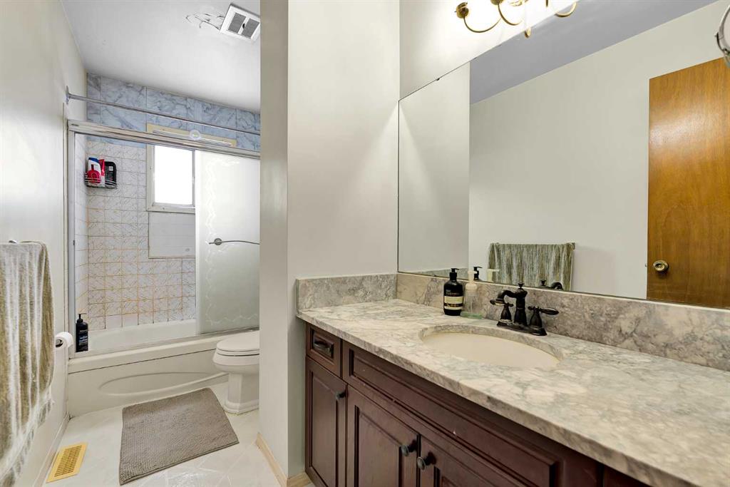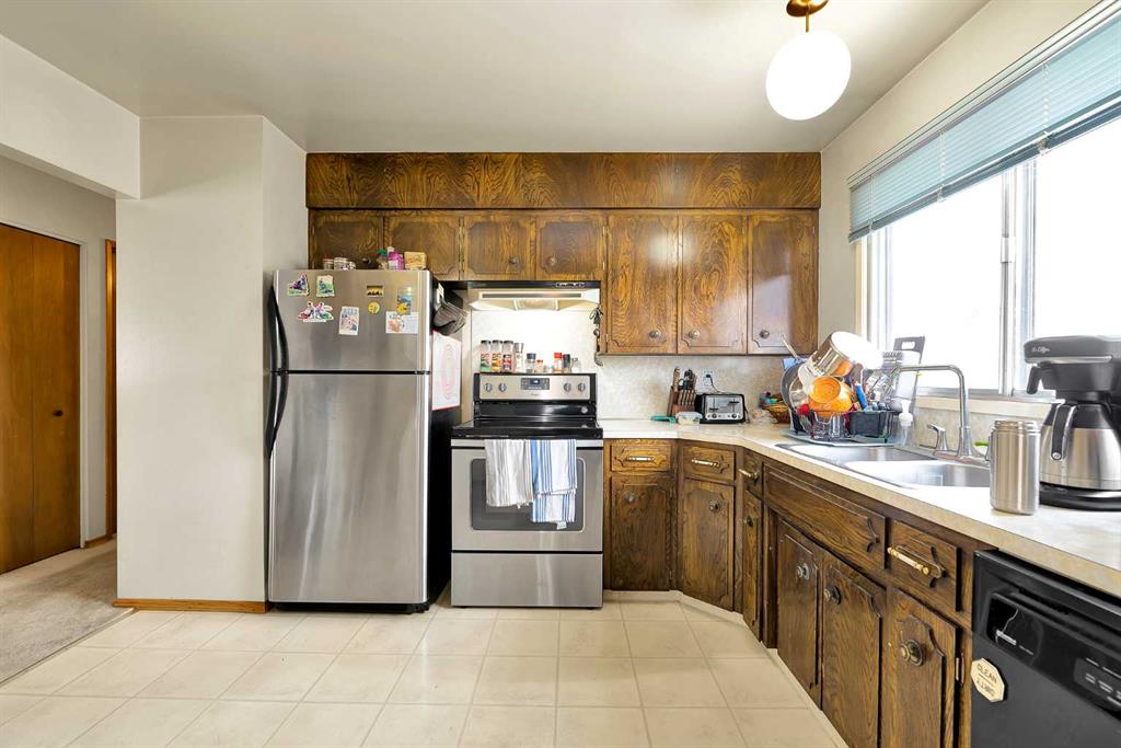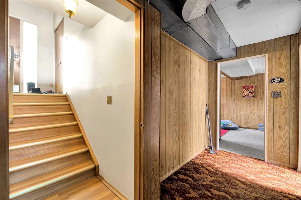 The main level features a functional, open-concept design centered around a cozy living room with a classic wood-burning fireplace—perfect for Calgary winters. The spacious dining area flows seamlessly into a large kitchen boasting ample cabinetry and counter space. Three well-sized bedrooms and a 3-piece bath complete the main floor, providing a comfortable and versatile layout.