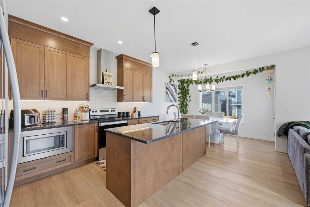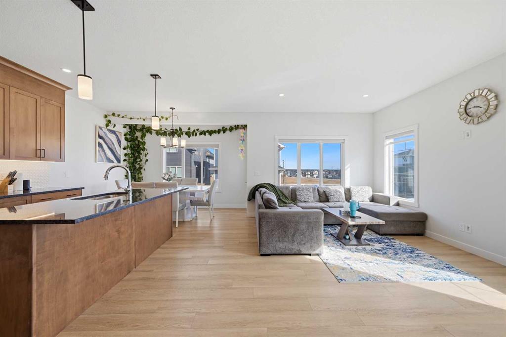 Step inside to a bright and welcoming main floor boasting 9' ceilings, neutral tones, and stunning luxury vinyl plank flooring flowing throughout. The heart of the home is the upgraded gourmet kitchen, complete with quartz countertops, a massive island, and premium finishes — a dream for any home chef. The generous dining area opens through patio doors to the backyard, seamlessly blending indoor and outdoor living. Relax and unwind in the spacious living room, where large windows flood the space with natural light and a cozy fireplace sets the perfect ambiance for entertaining family and friends.