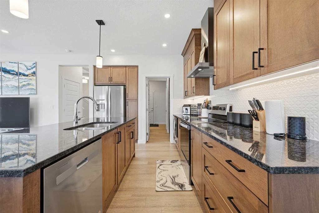 Welcome to 1448 Bayview Point SW — A Stunning 2023 Genesis-Built Home in the Heart of Bayview, Airdrie! Nestled on a desirable corner lot in the beautiful community of Bayview, this home offers over 2,000 sq ft of thoughtfully designed above grade area, loaded with upgrades throughout. With 3 bedrooms + bonus room, 2.5 bathrooms upstairs, and a 2-bed and full bath finished basement, this property is the perfect blend of style, comfort, and functionality.