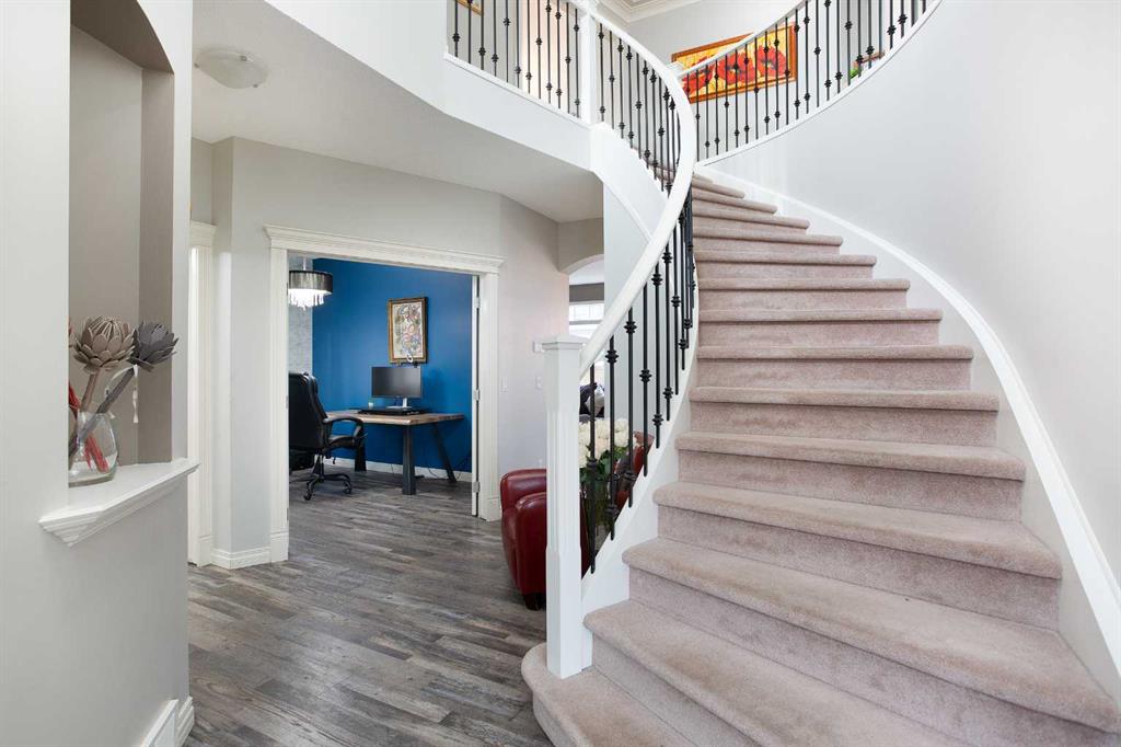 Enjoy a private landscaped yard with mature trees, a rear deck, and excellent outdoor living. Ideally located with quick access to downtown, Stoney Trail, and the Rocky Mountains, while being steps from Griffith Woods Park, pathways, schools and amenities.