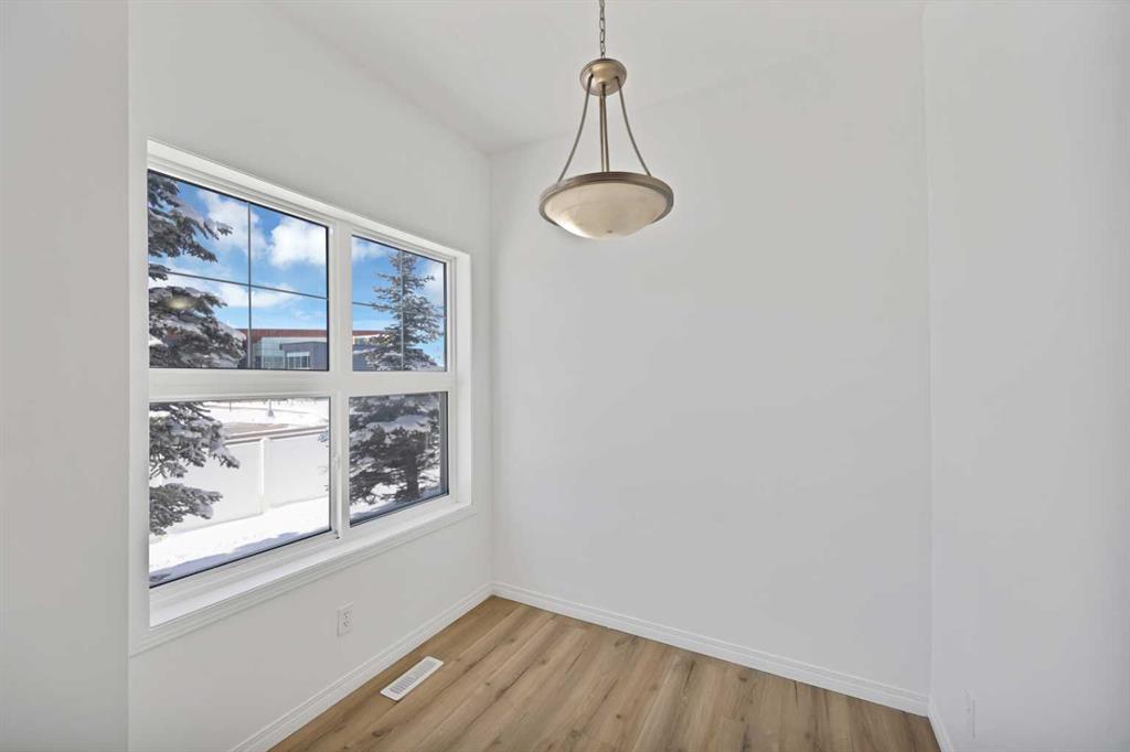 The main floor features a **bright and functional open-concept layout** with large windows that allow natural light to fill the living space. The kitchen offers ample cabinetry, practical counter space, and a breakfast bar that flows into the dining area, creating a comfortable space for both everyday living and entertaining. The dining area connects seamlessly with the living room, making the main floor ideal for gathering with family and friends.