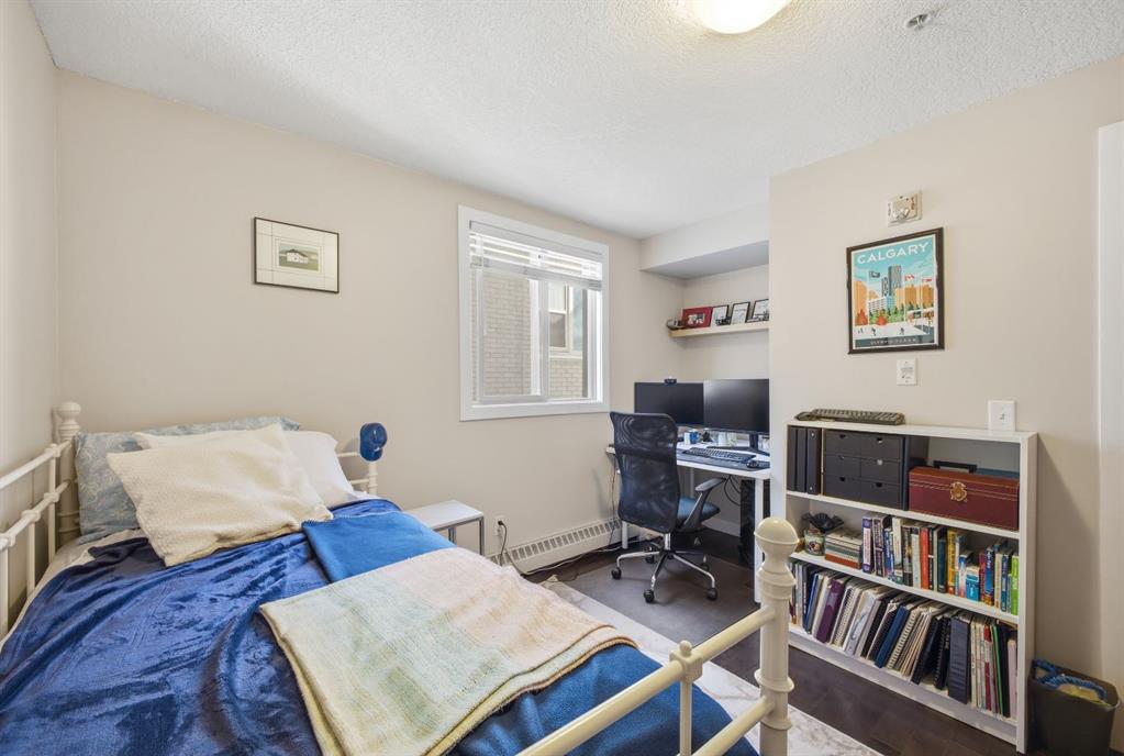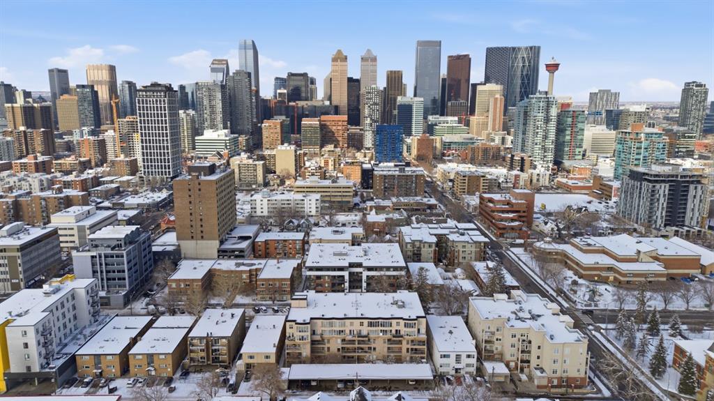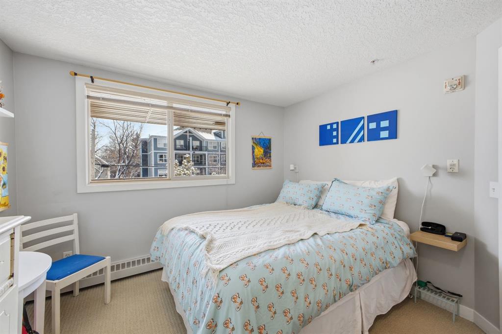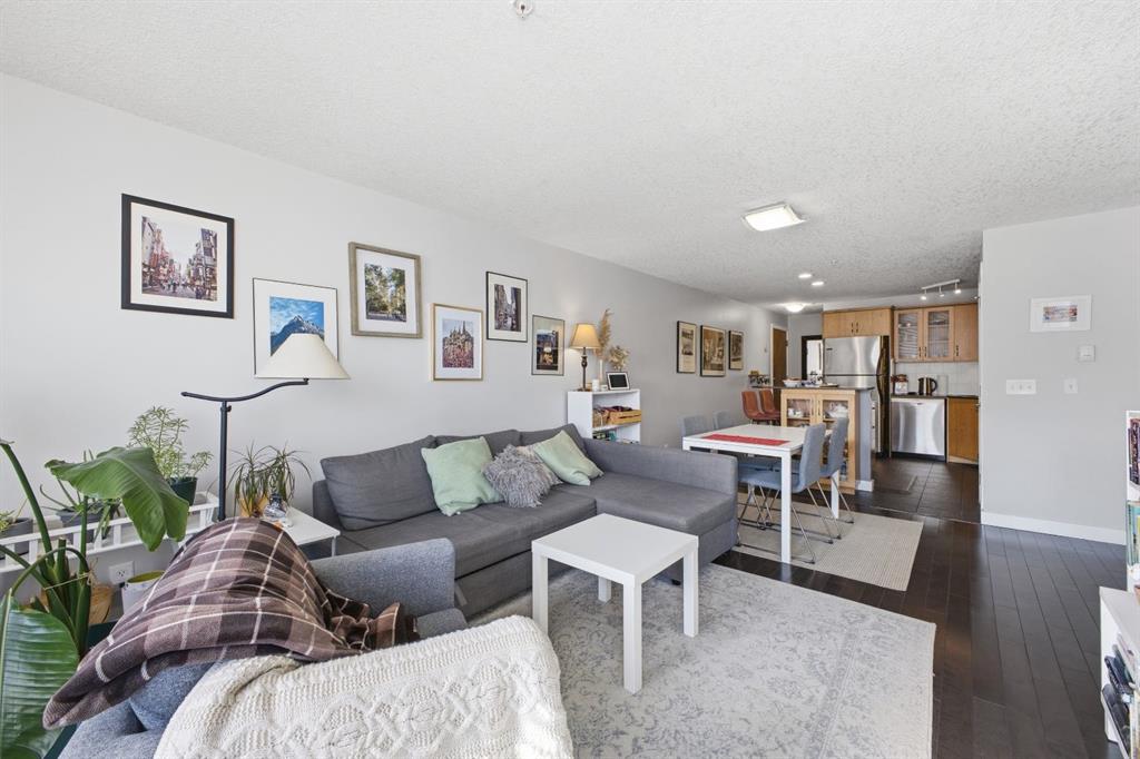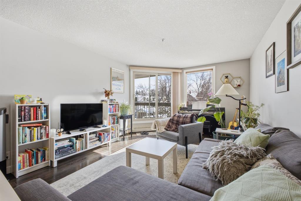 Charming 2-bedroom, end-unit, concrete construction condo with a sunny south-facing balcony, perfectly positioned in the heart of Mission. This inviting home features an open layout with hardwood and tile flooring, a well-appointed kitchen with granite countertops, an island with seating, stainless steel appliances, a pantry, and a comfortable dining area. The spacious living room opens directly onto the balcony, creating an effortless indoor–outdoor connection. Both bedrooms offer generous closet space, and the updated 4-piece bathroom adds a fresh, modern touch. Additional conveniences include in-suite laundry, titled underground parking, an assigned storage locker, and the value of all utilities included in the condo fee. The location is exceptional—just steps to the vibrant shops, restaurants, cafes, and pubs along 17th Avenue and 4th Street, with easy access to public transit, the MNP Community & Sport Centre, Stampede Park, and the scenic river pathways.