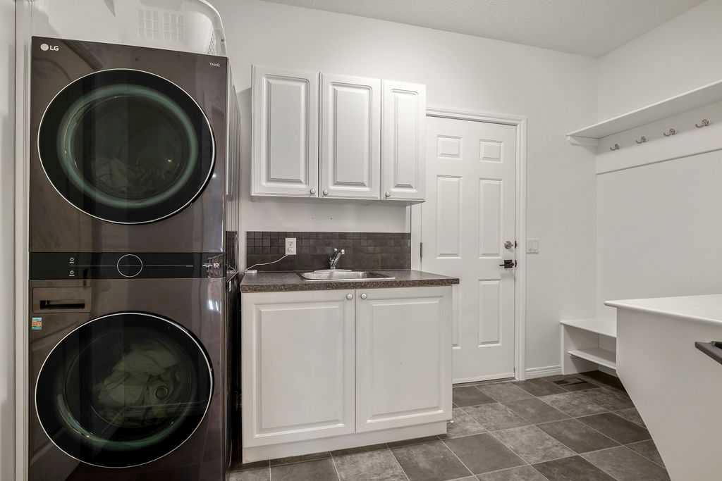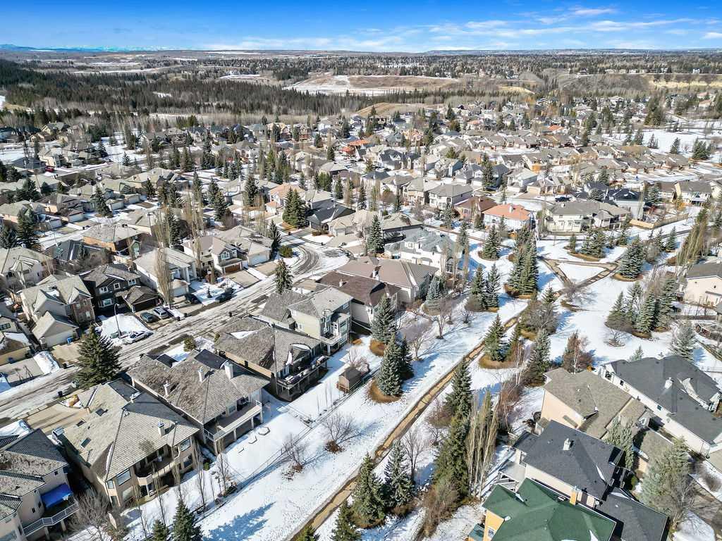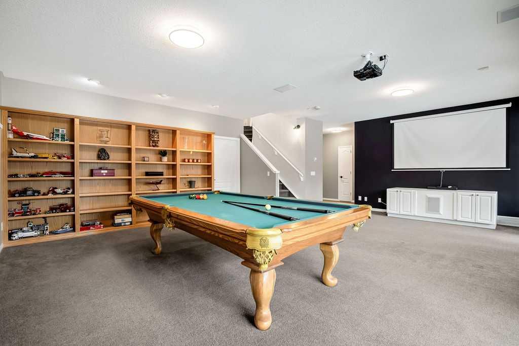The Master Retreat offers a walk-in closet and a lavish ensuite with a Jacuzzi tub. Enjoy the ultimate entertainment space in the walkout basement, featuring in-floor heating, 9ft ceilings, and a projector with an included screen. The exterior is equally impressive with an in-ground sprinkler system, a full-length rear deck (table included), and wiring ready for your future hot tub. The oversized, heated double garage features extra length, built-in cabinets, and a dedicated work area. The roof features cedar shakes, with 1500 shakes recently updated 3 years ago.