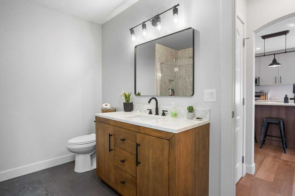 The main level features well-appointed bedrooms, including a spacious primary retreat, along with a thoughtfully renovated bathroom showcasing modern finishes. The overall design reflects the care and attention that has gone into updating this home throughout.