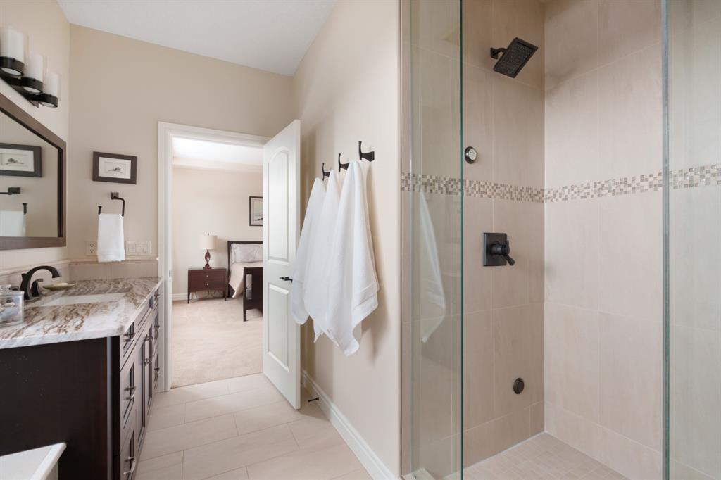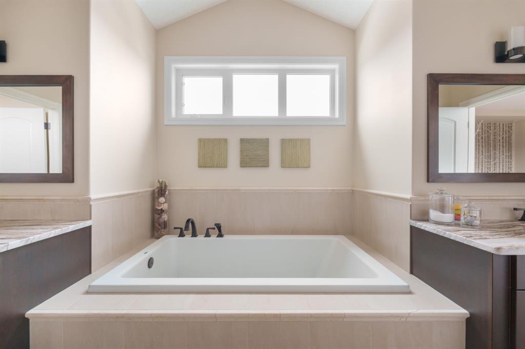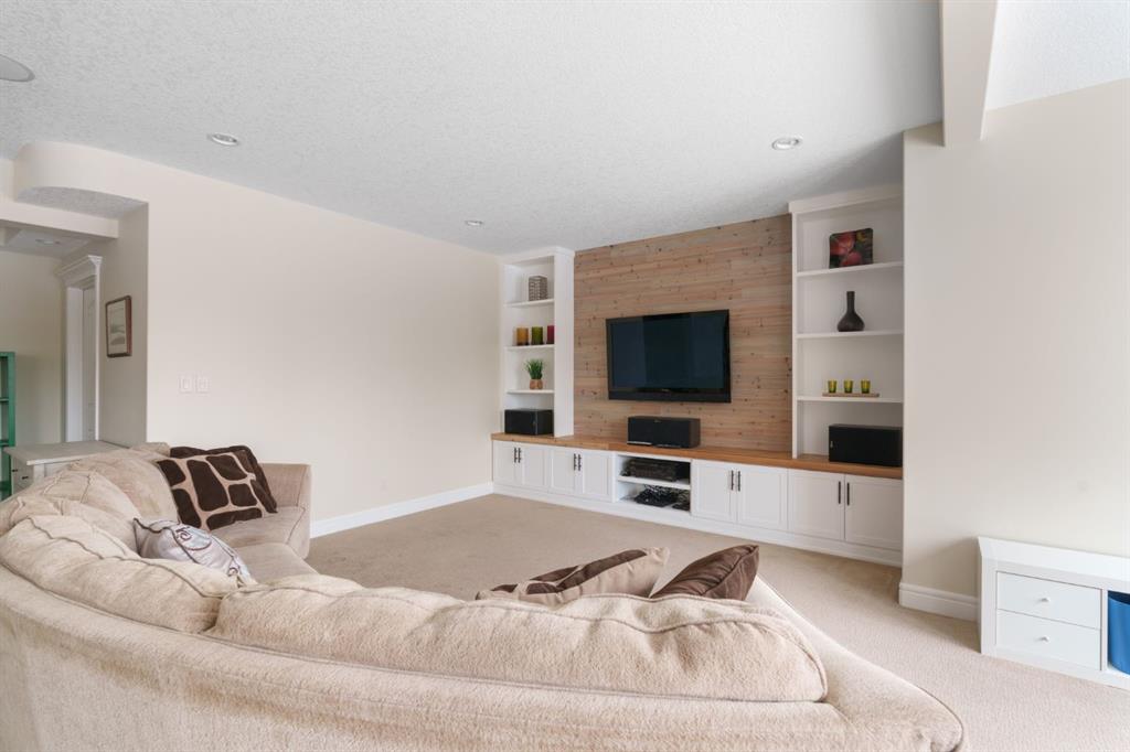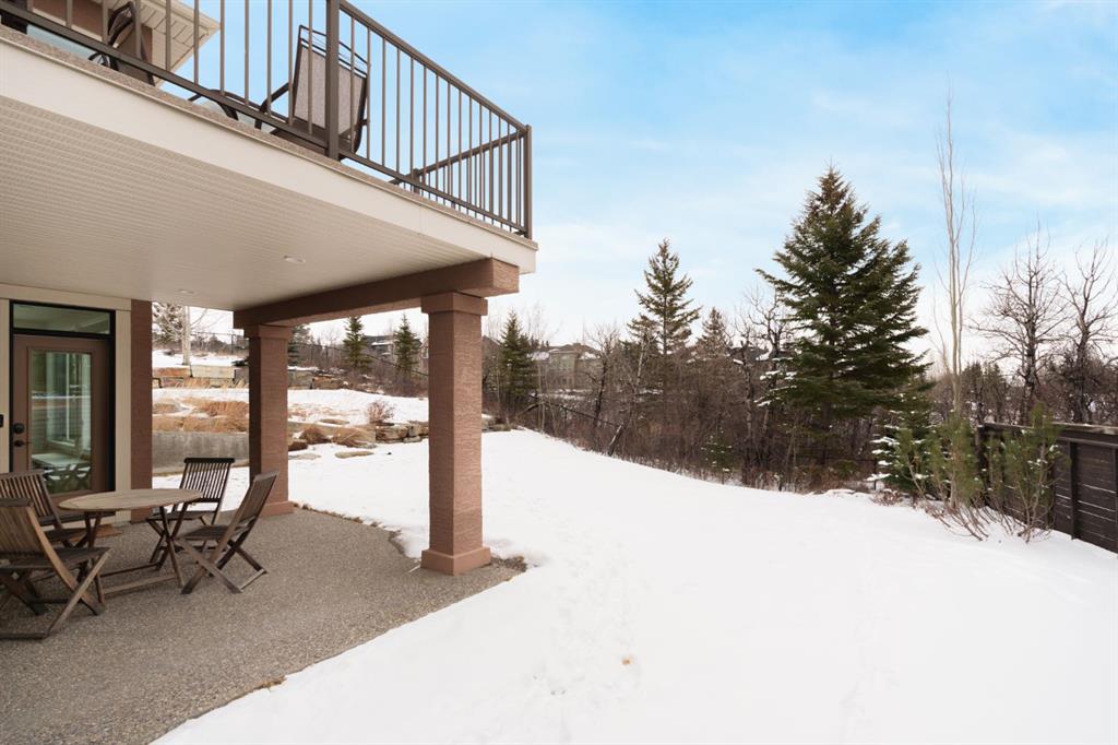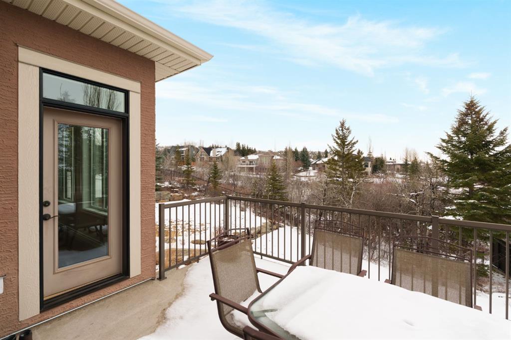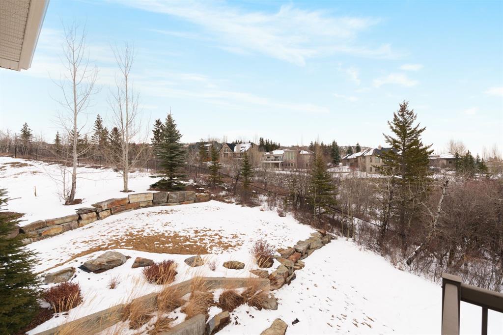 OPEN HOUSE – Sat March 21 (1-3pm) A rare opportunity on Calgary’s Westside… this estate home sits on a quiet cul de sac, on an 11,600 sq ft pie-shaped lot, backing a ravine and nature trail. You will be calmed by the sound of frogs at night, and birds singing in the morning, watching the deer from your deck, this is a space your kids will love to explore and likely where your mornings and evenings will begin walking the dog through the ravine system as it meanders north – a PEACEFUL SPACE – WONDERFUL! All of this is centrally located with ease of access to Calgary’s finest schools and the amenities we love here on the Westside. This home is a two storey walkout, measuring 4,185 sq ft over three levels, 3 beds and a Bonus Room up with a 4th bed and full bath down and a HEATED 3 car garage. Highlights include 10 foot ceilings on the main, 9 feet up & down, wide plank hardwoods through the main, granite counters throughout, designer lighting and window coverings, B/I speakers, central A/C, irrigation and more. On the main you will love the open plan, which draws you through to the Great Room in back, a wall of windows and direct access to the deck and the SIGHTS & SOUNDS of NATURE. The kitchen features an over-sized center island, granite counters in a “leather” finish, a Bosch gas cooktop and wall oven and a wine fridge. The kitchen is open to the dining space, overlooking the ravine – NICE! There is also a private Den/Home office on the main with custom built-ins. Upstairs, a large Bonus Room under a 13’ ceiling, SPACIOUS and BRIGHT. The Primary Bedroom sits at the back of the home, overtop of the ravine and enjoys a wonderful 5pc en suite and steam shower! The two additional beds up are well-sized and share a 4pc bath. The walkout level is fully finished offering a wide open space to accommodate a media space, a games space, a 4th bed and full bath… with direct access to your over-sized rear yard… BACKING THE RAVINE – this is an AMAZING location.