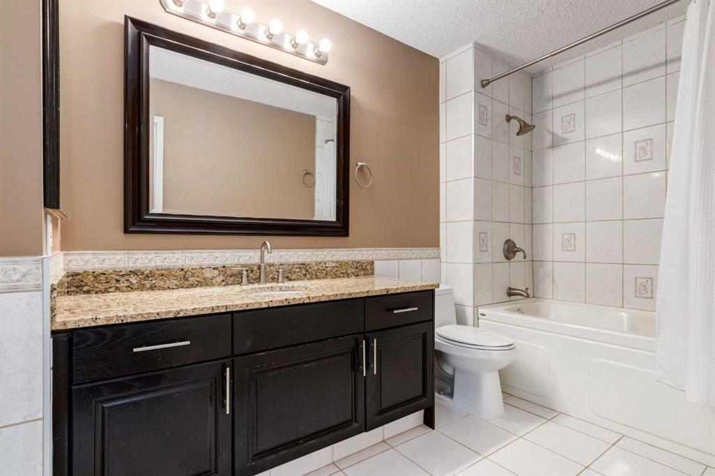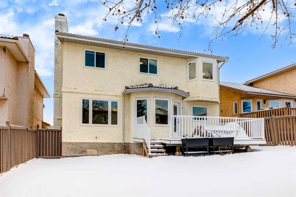 Excellent family home with numerous updates, located across from a wide open green space. Stucco exterior with concrete tile roof accentuate the excellent curb appeal. Traditional layout with large formal living and dining room to entertain your guests, along with spacious family room with builtins and wood burning fireplace. Beautiful kitchen with granite counters and matching backsplash, and undercount sink. Breakfast nook is surrounded by windows and opens to the deck in a huge rear yard. including newer windows, furnace, and interior renovations as well. Vinyl plank throughout the main floor. Hardwood floor on stairs and upper hall. All bathrooms have also been renovated, granite counters, undermount sinks. 3 bedrooms on the upper level, primary bedroom has a sunny southern exposure and overlooks the greenspace, dual closets, and 4 piece ensuite. This home is within walking distance to Starbucks, Sunterra Market, Restaurants, along with many neighbourhood conveniences. Windows replaced in 2014.