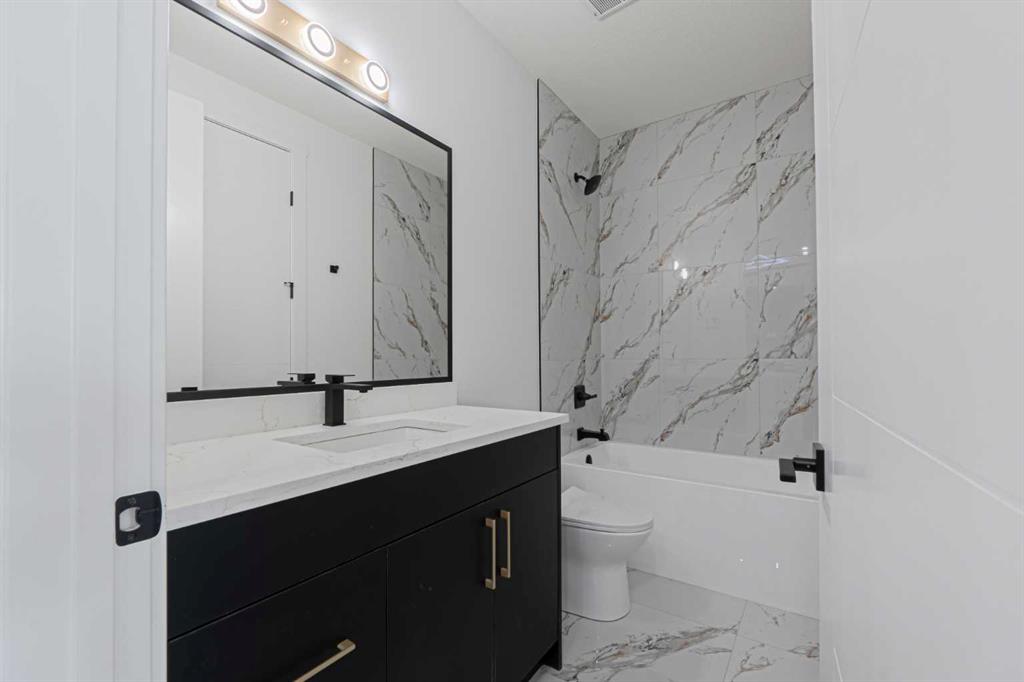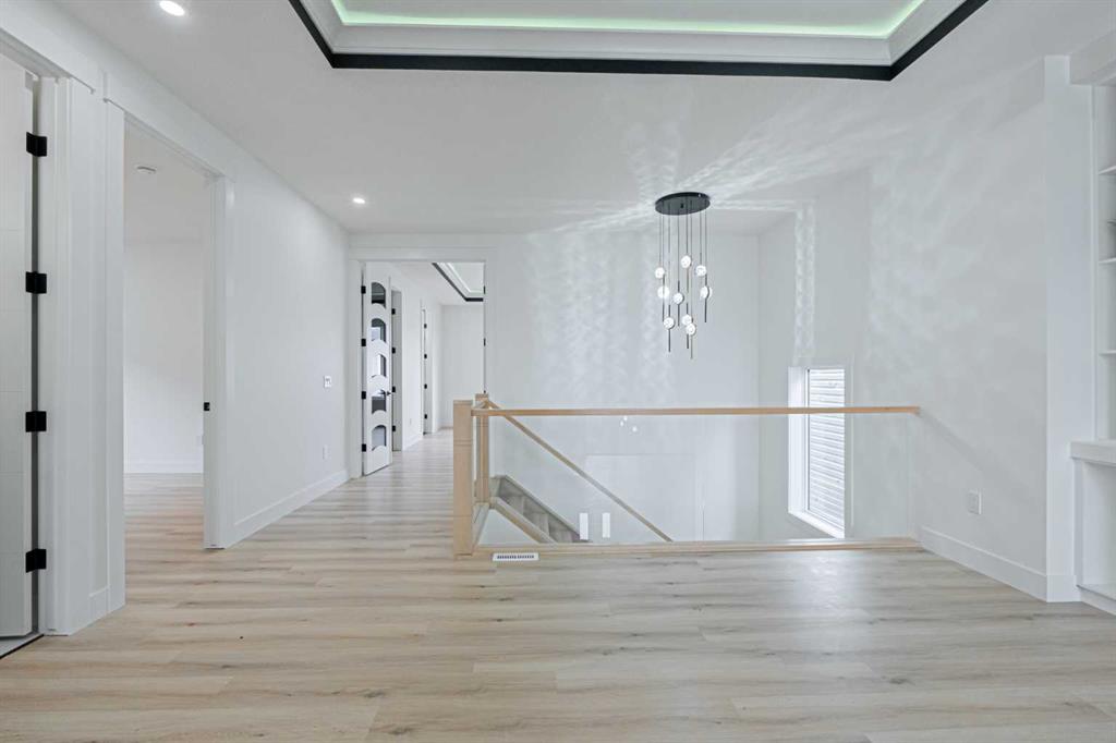 Welcome to this stunning 2,925 sq ft brand new luxury home with a legal 2-bedroom basement suite, designed with exceptional upgrades and thoughtful details throughout. From the moment you enter through the double front doors, you are greeted by a grand open to below foyer, 9’ ceilings on all levels and 8’ doors on both the main and upper floors. This spacious home offers 5 bedrooms, including a main floor bedroom with a full bath, perfect for guests or extended family. The upper level features two master bedrooms, each with custom feature walls. The primary master includes a luxurious 5-piece ensuite and walk-in closet with double-door entry, while the second master has a 3-piece ensuite and built-in makeup vanity. Two additional bedrooms, a full bath and a beautifully finished bonus room with a feature wall and knock-down ceiling complete the upper level. The main living areas are equally impressive with two living spaces, feature walls in the family room and bonus room and elegant lighting throughout. The chef’s kitchen is equipped with ceiling-height cabinets, a high-end chimney hood fan, upgraded appliances, and a full spice kitchen. Additional highlights include luxury vinyl plank flooring throughout the home, tile to ceiling in all bathrooms, upgraded tile and lighting fixtures, extra-wide windows, glass railing staircase, a convenient entryway bench, and custom material shelves in all cabinets. The legal 2-bedroom basement suite adds incredible value and flexibility, making this home perfect for families looking for luxury, space, and income potential. Book your showing now and experience this exceptional home in person.