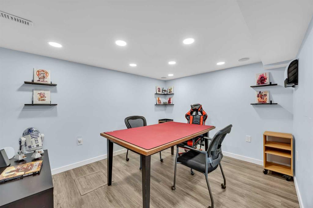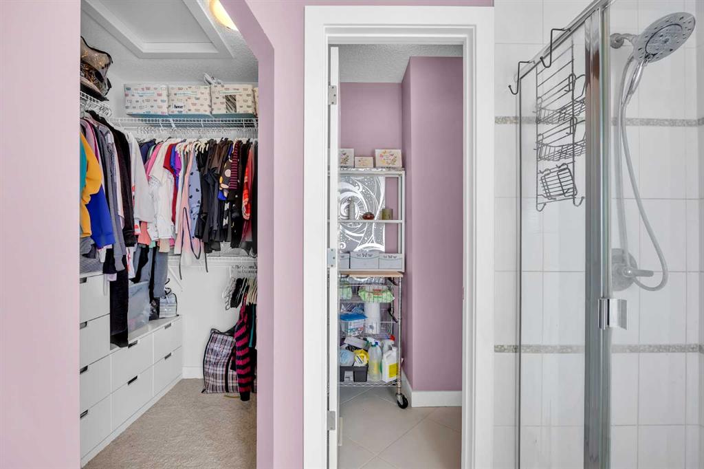 Welcome to the highly sought-after community of Skyview Ranch! This former showhome built by Shane Homes has been well cared for. With a total of 4 bedrooms, 3.5 bathrooms and over 2300 sq ft of living space that includes a fully developed basement, there's plenty of space to grow. A cozy, bright entryway welcomes you to this home that can also serve as an office, reading or music room. The open-concept main floor features an abundance of natural light and a large kitchen with a walk-in pantry, stainless steel appliances, lots of cabinet and counter space, an island with seating, and also lots of space for a dining table. The living room has a built-in wall unit and a corner gas fireplace. Rounding out the main floor, there is a powder room and a second entrance in the rear to a double detached garage. Moving upstairs, the primary bedroom can easily fit a king size bed and features a relaxing ensuite with separate shower and soaking tub, walk-in closet with built-in organizers. Two additional bedrooms are generous in size with one bedroom featuring a multifunctional murphy bed and desk. Laundry is conveniently located on the top floor along with another full bathroom - a perfect setup for a family. The fully finished basement has spacious entertainment/hosting area, full bathroom, and a gym that could also be easily converted to a bedroom by adding a door. Don’t forget to look for the hidden door that opens to tons of extra storage space! The low maintenance backyard has a double garage and room for RV parking. Recent updates on this home include vinyl siding (2025), a new roof (2026), a new dishwasher, microwave hood fan, washer/dryer, water tank, and furnace (serviced annually and warranty until 2030). This home is move-in ready and close to many amenities - playgrounds, schools, walking/bike paths, public transit, soccer fields, shopping, and major roads. Check out the link for the 3D tour, but book your tour before it's too late!