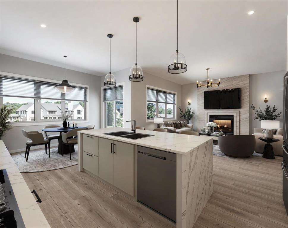 NEW BUILD IN BRIDGES OF LANGDON!! MAIN FLOOR BEDROOM + FULL BATH!! TRIPLE ATTACHED GARAGE!! 5 BED 4 BATH!! Welcome to this stunning brand-new home in the sought-after community of Bridges of Langdon! Step inside to a bright, open main floor featuring a spacious living area with gas fireplace, a formal dining space, and a cozy breakfast nook with access to the backyard deck. The chef-inspired kitchen offers a large island, butler’s pantry, and plenty of cabinet space for entertaining and everyday living. A main floor office/bedroom and full 3-pc bath add flexibility. Upstairs, you’ll find four generously sized bedrooms, including a beautiful primary retreat with walk-in closet and spa-like 5-pc ensuite. Two spacious bedrooms share a 3-pc common bath, while the fourth bedroom has its own 3-pc bath ensuite making it the second master bedroom. The upper level also features a spacious bonus room, convenient upper-floor laundry, and an impressive open-to-below design. Basement has SIDE ENTRANCE and BIG WINDOWS!! Perfect for growing families, this home offers plenty of space inside and out. Triple attached garage, functional layout, and a prime location -this home checks every box for space, comfort, and modern living. DON’T MISS YOUR CHANCE TO OWN THIS BRAND-NEW HOME IN NORTH BRIDGES OF LANGDON - BOOK YOUR SHOWING TODAY!! This home is yet to begin. Attached blacklines are from the builder- RMS measurements are not done yet.