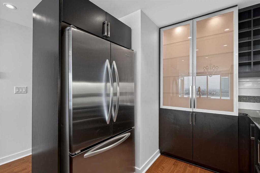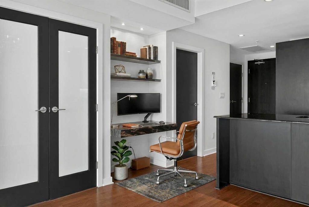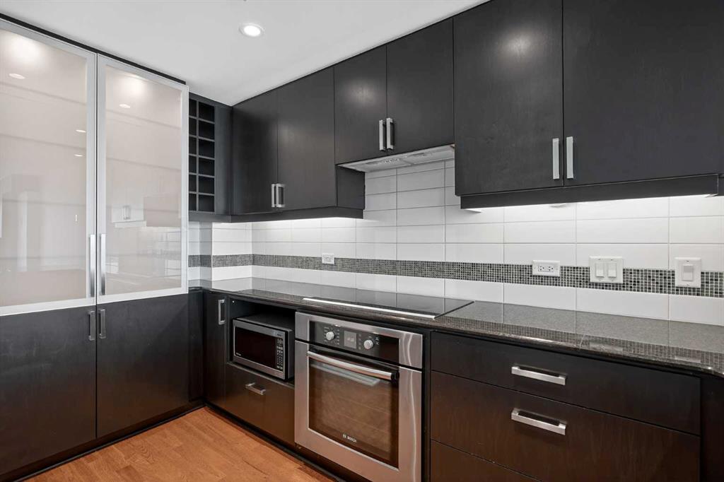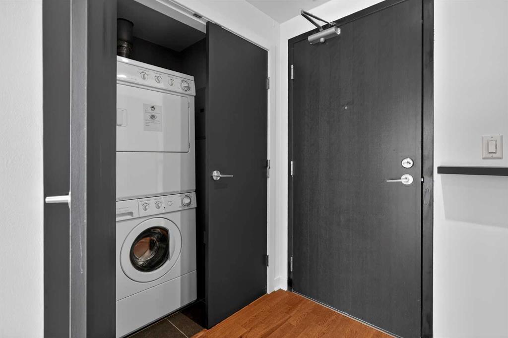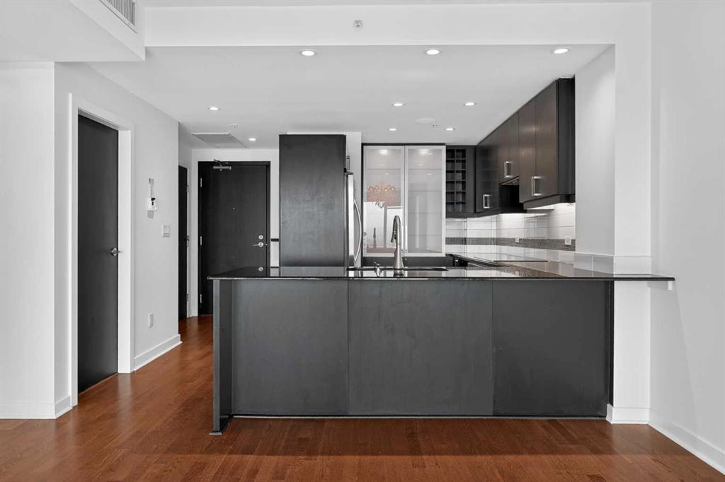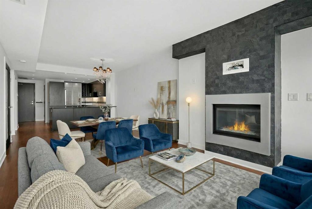 Welcome to Solaire, where elevated design meets an unbeatable Eau Claire lifestyle. Perched on the 16th floor, this beautifully upgraded 1 bedroom, 1 bathroom residence offers a refined, boutique luxury feel the moment you step inside. Floor to ceiling WINDOWS flood the space with natural light, creating a bright and open atmosphere that feels both modern and inviting, while showcasing uninterrupted west facing views. The thoughtfully designed layout seamlessly connects the kitchen, dining, and living areas, perfect for entertaining guests or enjoying a quiet night in. The kitchen is finished with high end cabinetry, sleek surfaces, and premium Bosch appliances, delivering both performance and a clean, sophisticated aesthetic. The living area is anchored by a cozy GAS FIREPLACE, adding warmth and ambiance, making it the perfect place to unwind while taking in the incredible views. The bedroom is a true retreat, featuring elegant glass French doors that enhance the open feel while still offering privacy, along with a walk through closet that leads into a well appointed full bathroom. Every detail has been carefully considered to maximize both comfort and flow. What truly sets this home apart are the west facing views, offering breathtaking sunsets over the MOUNTAINS and the BOW RIVER, a rare combination that brings a sense of calm and escape right into your everyday life. This unit also includes UNDERGROUND TITLED PARKING, adding everyday convenience and long term value in a premier downtown location. Step outside and you’re immediately connected to everything that makes Eau Claire one of Calgary’s most desirable communities, from the Bow River pathways and green spaces to local cafés, boutique shops, and some of the city’s best restaurants, all just moments from your front door. Whether you’re a professional looking for a polished downtown residence, an investor seeking a premium rental in a high demand location, or someone who simply values lifestyle and convenience, this is a rare opportunity to own a standout unit in one of the city’s most sought after buildings. Opportunities like this, with this level of finish, view, and location, rarely come to market at this price point.