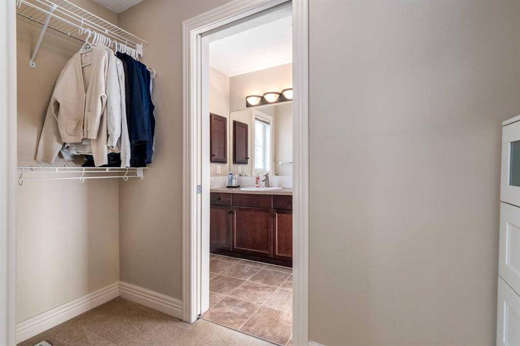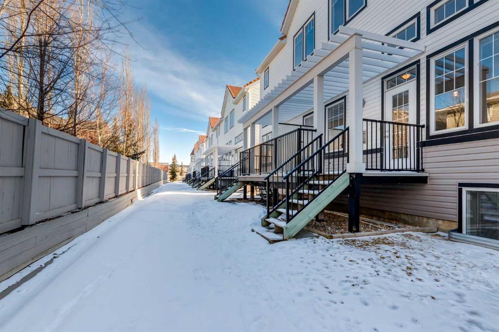 Welcome to this well-maintained, smoke-free and pet-free townhome offering over 1,340 sq.ft. of stylish and functional living space. Located in a convenient and sought-after area, this home shows true pride of ownership throughout. The main level features heated tile flooring in the front entry and garage entry, paired with rich hardwood floors for a warm and inviting feel. The spacious living room impresses with soaring ceilings, a ceiling fan, and a gas fireplace with tile surround and mantle, creating a cozy atmosphere. A garden door leads to one of two private decks, perfect for outdoor relaxation. The kitchen is both functional and welcoming, complete with maple cabinetry, subway tile backsplash, pot drawers, a breakfast bar, and a large dining nook that easily accommodates a full-sized table — ideal for family meals or entertaining. A convenient 2-piece bathroom and main-floor laundry complete this level. The second private deck is just off the kitchen for added outdoor enjoyment. Upstairs, you’ll find two oversized master bedrooms, each with its own 4-piece ensuite bathroom and walk-in closet, offering plenty of space and privacy — a perfect setup for roommates, guests, or a home office arrangement. The partially finished basement includes heated tile at the garage entry and offers additional storage or potential for further development. The home includes a rare three parking spaces — an oversized single attached garage and two more outside. Situated close to schools, bus stops, and shopping centres, this townhome is the perfect blend of comfort, location, and value. With a new dishwasher and many thoughtful upgrades, this is an opportunity you won’t want to miss!