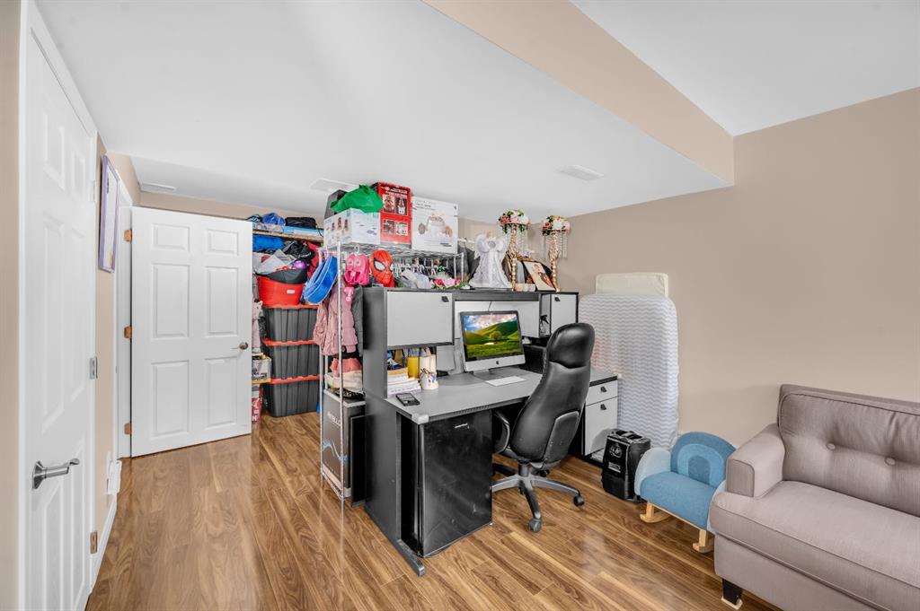 The fully finished basement expands your living space with a large recreation room featuring modern laminate flooring, along with rough-in plumbing for a future bathroom.