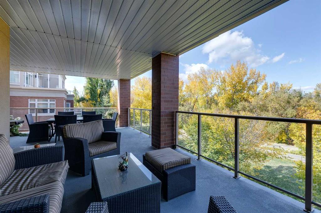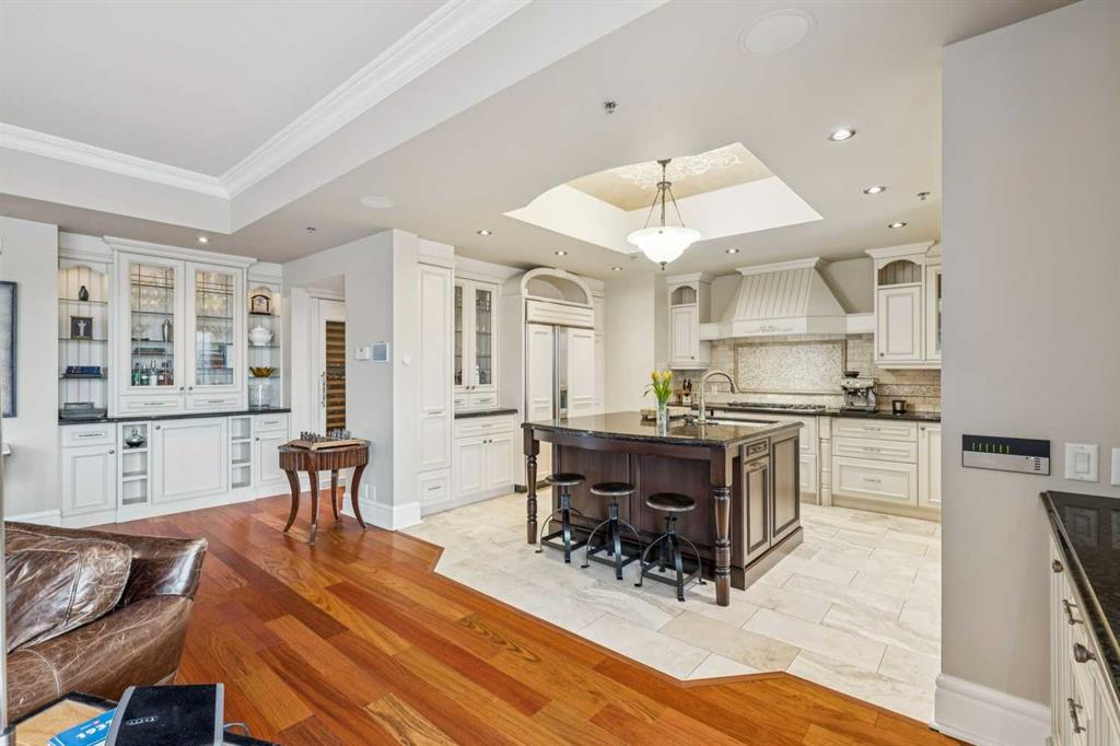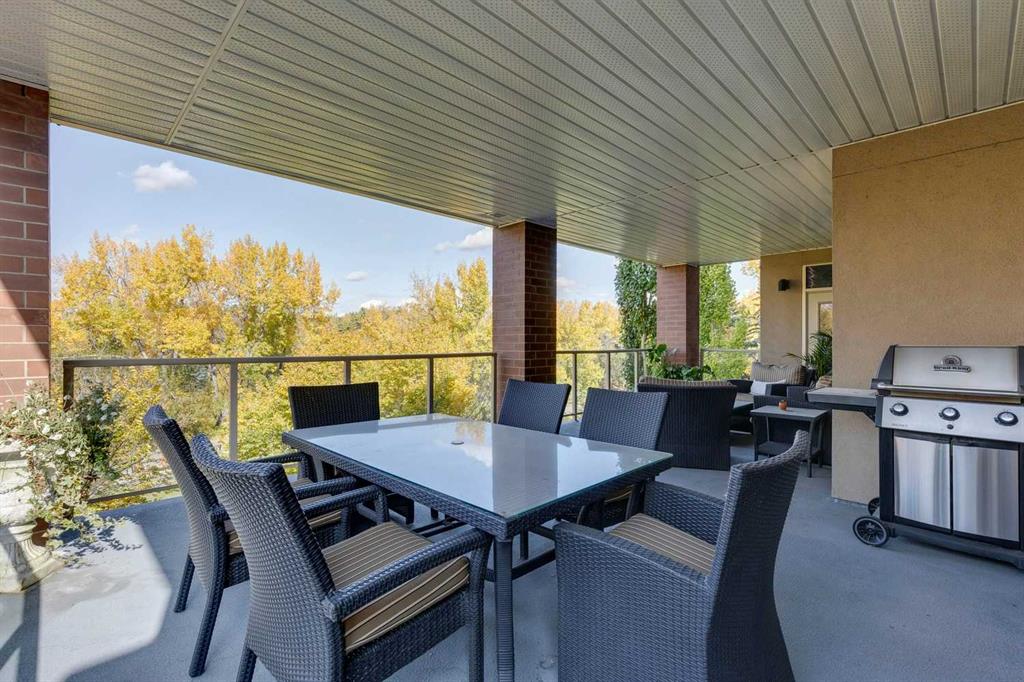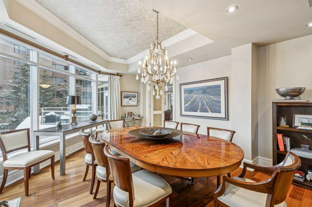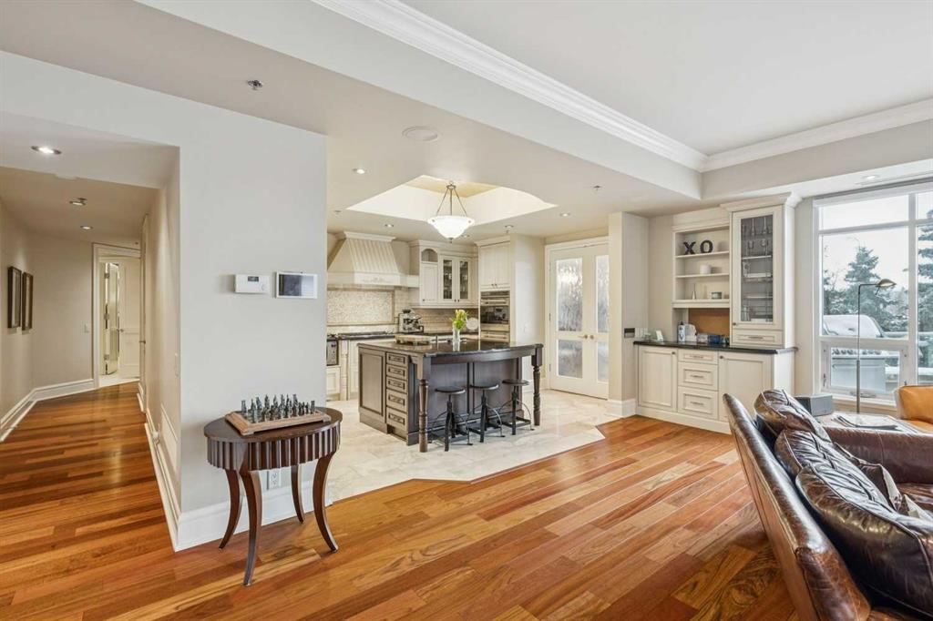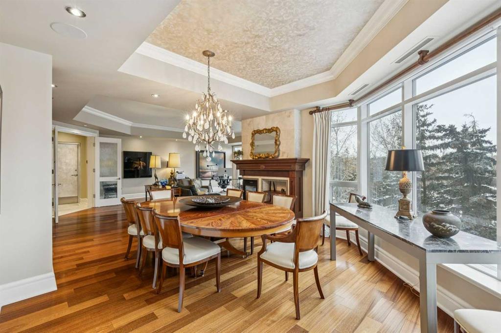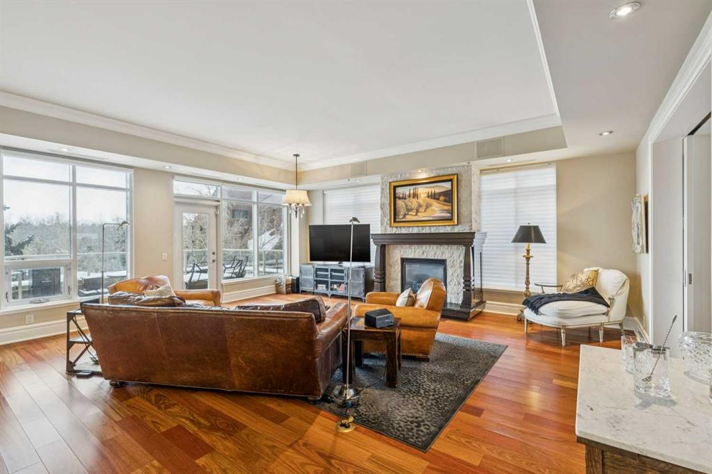 Welcome to Princeton Grande, one of Calgary’s most prestigious & exclusive riverfront addresses in the heart of Eau Claire, perfectly positioned along the Bow River & directly across from the natural beauty of Prince's Island Park. This extraordinary 3,065 sq. ft. private sub-penthouse offers an exceptional standard of luxury living, where timeless elegance, architectural scale & breathtaking river & park views come together to create a truly remarkable home. A private elevator opens directly into the residence, revealing expansive interiors designed for sophisticated entertaining & refined everyday living. Grand principal rooms are framed by oversized windows that capture sweeping views of the river & park, while high coffered ceilings, custom millwork, & elegant designer finishes elevate every space. The stunning formal living room, anchored by a double-sided gas fireplace & surrounded by windows, creates a dramatic yet inviting setting while the gracious dining room is perfectly suited for hosting memorable dinners & special occasions against a backdrop of spectacular views. The chef-inspired kitchen is beautifully appointed with granite countertops, custom cabinetry, & an expansive pantry, offering both functionality & understated luxury. Flowing effortlessly into a bright south-facing breakfast nook & a comfortable family room, with access to a private terrace ideal for outdoor dining & enjoying river views. A refined den with custom built-ins provides the perfect executive office or private library (could be used as a 3rd bedroom). The luxurious primary suite is a tranquil sanctuary featuring a spacious walk-in closet, private balcony, & a spa-inspired ensuite complete with a deep soaker tub, glass-enclosed shower, and dual vanities. A second bedroom with its own ensuite & large closet offers exceptional comfort & privacy for guests. Additional highlights include 371+ sq. ft of outdoor living space on two balconies, a dedicated laundry room, central vacuum system, built-in speaker system, abundant in-suite storage, two titled underground parking stalls a short distance to the elevator, & a titled storage locker. Residents of Princeton Grande enjoy an unmatched collection of five-star amenities designed for comfort, wellness, & entertaining. These include 24-hour concierge & security, an elegant lobby with fireplace lounge, beautifully appointed guest suites, a private library & conference room, temperature-controlled wine storage with a tasting room, a sophisticated residents’ lounge with full kitchen & terrace, fully equipped fitness center, a dedicated yoga studio, steam room with change facilities, an underground car wash bay, & a private freight elevator for discreet service & move-ins. Surrounded by the Bow River pathways, steps to downtown’s finest dining, cultural venues, & vibrant urban amenities, this exceptional residence offers a rare opportunity to experience luxury condominium living at one of Calgary’s most distinguished & sought-after addresses.