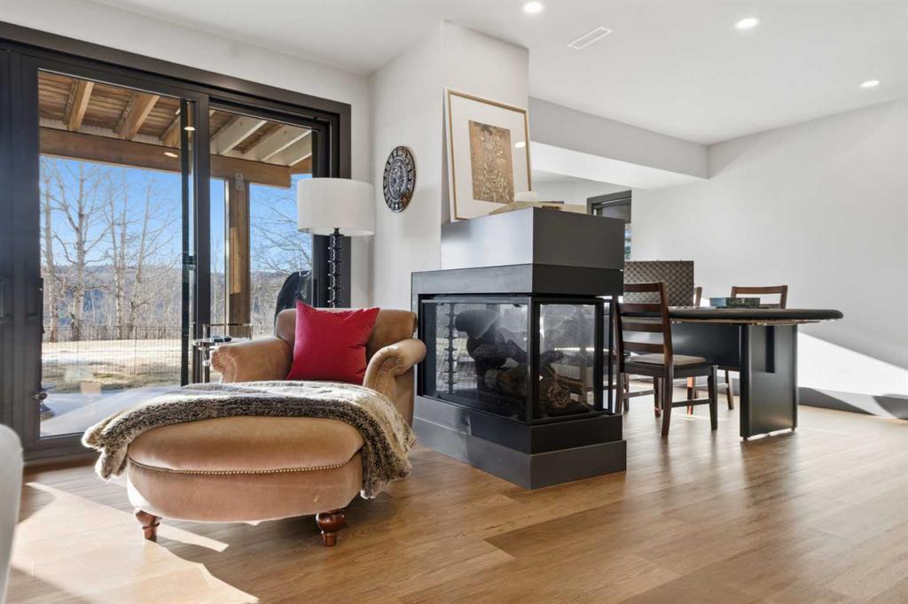 Experience luxury living in the heart of Priddis Greens with this beautifully renovated Augusta-model villa bungalow, perfectly positioned to capture sweeping views of the mountains, valley, and pristine golf course. Offering over 1800 sq ft on the main level and more than 3200 sq ft of total living space, this home blends elegance with comfort. The gourmet kitchen features two-tone cabinetry, granite counters, premium stainless appliances, a 5-burner gas stove, and a striking designer penny-tile backsplash. The spacious primary suite includes a stunning spa-inspired ensuite with heated floors, oversized multi-spray shower, dual sinks, and a skylight. Vaulted and flat ceilings, wide-plank flooring, custom walnut built-ins, skylights, and an impressive, curved staircase elevate the main floor. The walk-out basement is bright and inviting with wall-to-wall windows, generous entertainment areas surrounding the 3 sided fireplace. Play pool or cards while watching the big screen, a full bath, and a large bedroom. Additional upgrades include LUX triple-pane windows, two new furnaces, central A/C, enhanced soundproofing, and an oversized double garage with extra storage and 220v, extra space for you golf club and bikes. Also set up for 220v Hot Tub out back. Set within a well-managed condo community with a strong reserve fund, this exceptional villa offers unmatched tranquility, convenience, and lifestyle — from cross-country skiing at your doorstep to golfing just steps away.