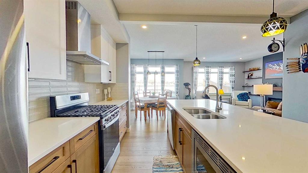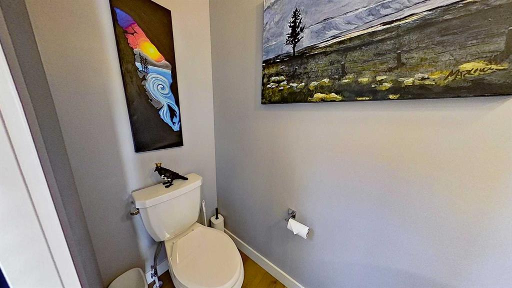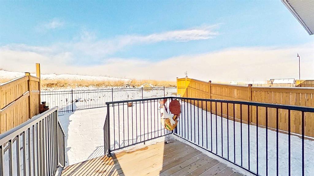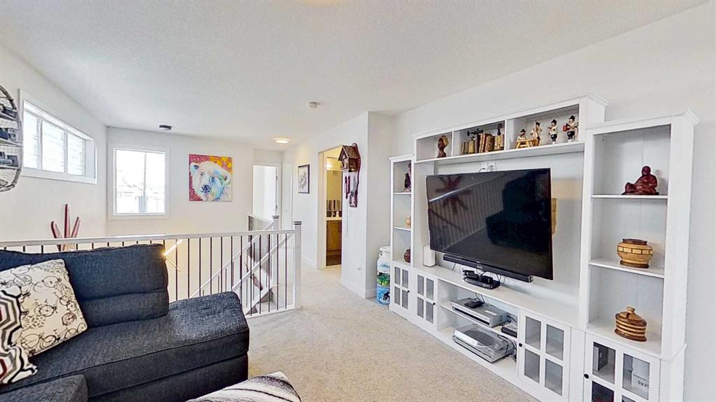 Rocky Mountain views from this 2,016 sq. ft. detached home located in Sunset Ridge, Cochrane. The home features a south-facing front exposure, a fully fenced backyard, and backs onto a planned pathway. Interior features include 9-foot ceilings, engineered hardwood flooring, and large windows providing natural light. The kitchen includes a quartz island, quartz countertops, and upgraded appliances. The great room includes an electric fireplace, and the home is equipped with central air conditioning. Upstairs, the primary bedroom includes a walk-in closet, 5-piece ensuite, and access to the laundry area, along with a loft space. The main floor includes a flex room with double doors suitable for office or hobby use. Additional features include a double attached garage, landscaped and fenced yard, and an unfinished basement. Located within walking distance to a planned community centre and future school, near RancheView K–8 School and St. Timothy High School, approximately 30 minutes to Calgary, approximately 40–45 minutes to the Rocky Mountains, and minutes from downtown Cochrane.