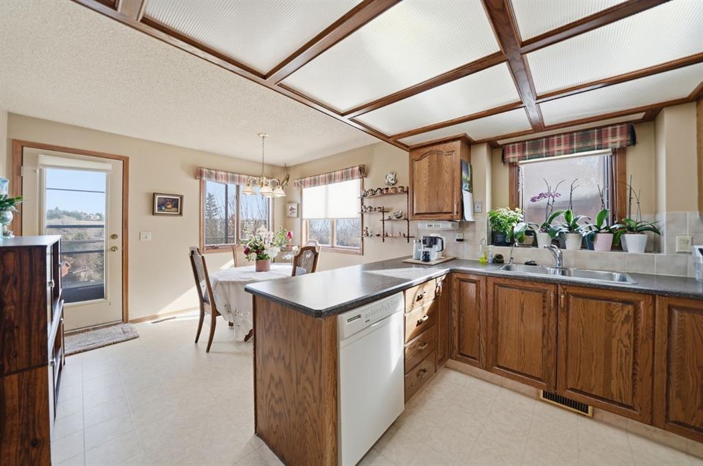 Welcome to a rare opportunity to experience villa living at its finest. Perfectly positioned on an extremely quiet street, this outstanding villa backs onto a greenspace, offering you great views of downtown Calgary and the rolling hills of Edgemont. It is a setting designed for peace and tranquillity, yet it keeps you wonderfully connected to the city you love. Constructed with both quality and lifestyle in mind, this home is sure to make you feel right at home from the moment you step into the welcoming large entry space. Directly off the foyer, you will discover a versatile flex room, which serves perfectly as a home office or as an additional main floor bedroom for visiting guests. Continuing on the main level, you will find the spacious primary bedroom, a true retreat complete with a great ensuite for your comfort and privacy. Moving into the heart of the home, you will be memorized by the soaring vaulted ceilings that create an incredible sense of space and openness. The layout flows effortlessly from the formal dining area into the living room, where a gas fireplace adds a touch of warmth and elegance. Huge windows in the living room invite a tremendous amount of natural light, making the space feel bright and cheerful all day long. Just off the living room, you will step into your large, private kitchen. Here, a cheerful sunshine ceiling brightens the space, and a welcoming breakfast nook provides the perfect spot for casual dinners. When you are ready to embrace the outdoors, step out from the nook onto your huge upper patio. You will instantly feel at peace as you listen to the soothing sounds of birds chirping and take in the serene view. The lower walkout level is fully finished and designed for both relaxation and function. It features a fantastic family room with the home’s second gas fireplace, creating a cozy atmosphere for movie nights or quiet evenings. Two additional bedrooms, a full bathroom with an updated shower, and a huge storage room complete this level. The true highlight, however, is the massive lower deck, which steps directly out to the greenspace you back onto. It is the perfect spot for the kids or grandkids to explore and play while you relax nearby. This home has been extremely well kept and lovingly cared for by its owner for over two decades. It is now ready for new owners to make it theirs and create many memorable memories for years to come. Some of the other thoughtful features include central air conditioning for year-round comfort, in-floor heating in the lower level, distiller for your drinking water and of course the maintenance-free oversized patio and deck, as well as some updated windows and plumbing. You will also appreciate being part of a very well-managed villa complex with affordable condo fees. If you are looking for a great villa in a quiet complex within the wonderful community of Edgemont, with easy access to groceries and shops. Come and experience the effortless lifestyle that awaits you.
