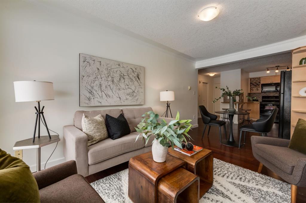 Live in Mission, arguably Calgary’s trendiest central district, allowing the best access to nightlife, trendy shops and cafes, downtown, and the beautiful Bow River pathway system. Walk to work, walk your raft down the street to float down the Bow River in the summer, and enjoy all that Calgary has to offer from this unbeatable location on a quiet street in the heart of it all. This condo building is meticulously run by a hands-on condo board (with low condo fees) and is maintained by a full-time, on-site maintenance person with pride of ownership and meticulous maintenance evident in every corner. With low condo fees, great management, in-suite laundry, covered parking, separate storage, a secure bike room, and a beautiful suite, this home won’t last long. As you enter this upgraded home, you’re greeted by a spacious entryway, upgraded flooring, large windows, and a fresh coat of paint in a designer color. The open concept kitchen boasts beautiful wood cabinetry adorned by timeless black hardware and spills easily into the spacious living and dining rooms; the perfect setup for entertaining guests. Step out of your living room onto your spacious private patio to enjoy the sunshine. The relaxing bedroom retreat is styled with designer wallpaper, is sized for larger furniture, and enjoys easy access to the full 4 piece bathroom. Enjoy doing laundry in the comfort of your own home in your spacious in-suite laundry area with plenty of additional storage. Ditch scraping snow off your car in the colder winter months as this home comes with a covered parking stall, and store your larger belongings in the separate secured storage locker. Mission Place also boasts a secure bike room to park your bike after exploring the endless beauty along Calgary’s famous Bow Valley Pathway System, which is accessible within a 2 block walk from your front door!