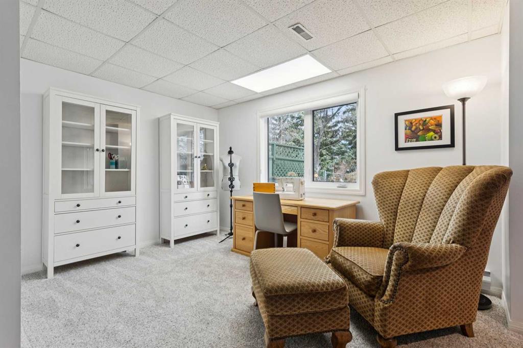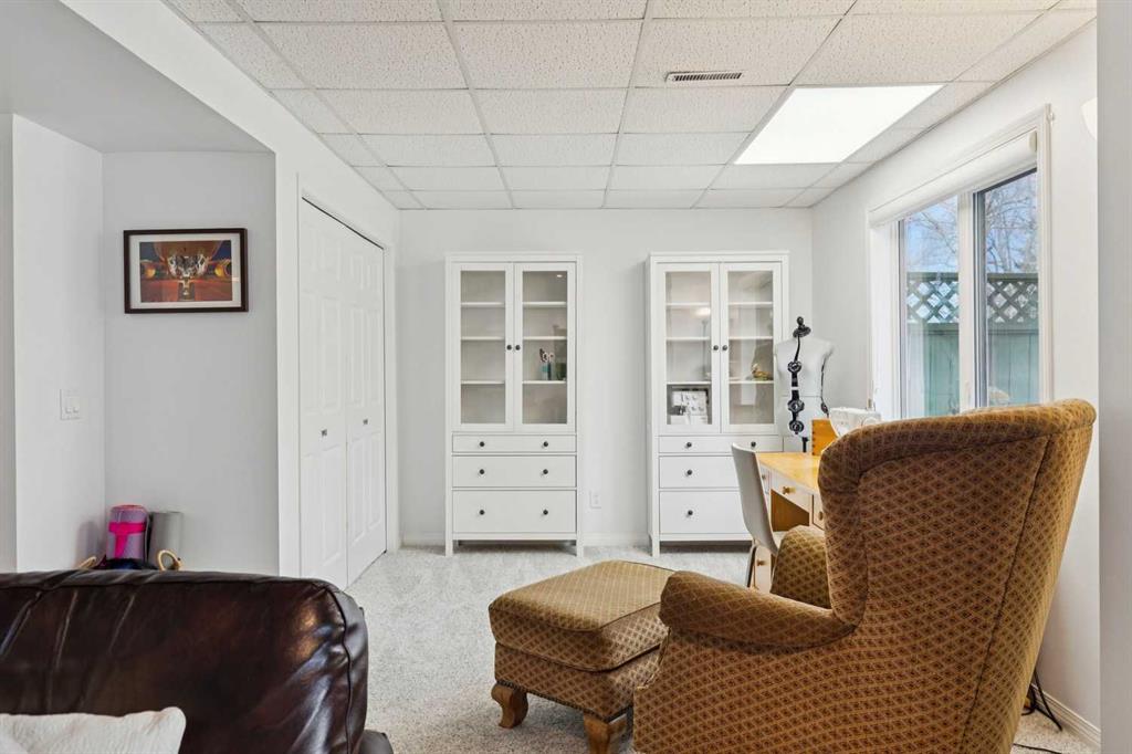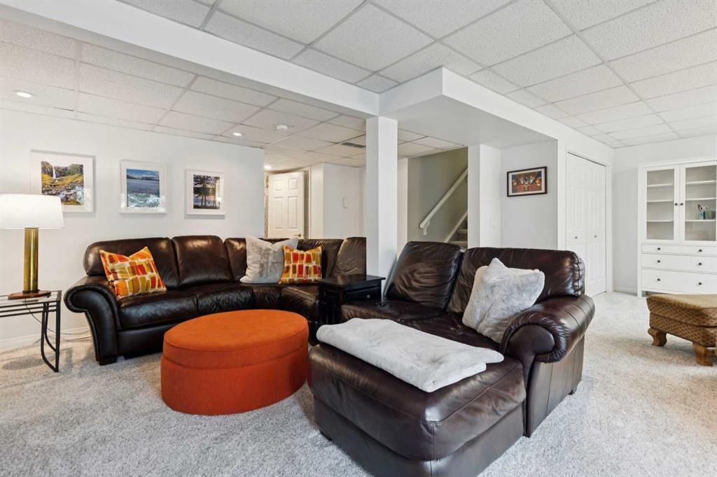 The walkout basement adds meaningful, flexible living space. The family room opens directly outside through sliding doors, while an additional side area provides the perfect setup for a home office, gym, or creative workspace, complete with a large window and closet storage. This level also includes under-stair storage, a full 4-piece bathroom with tile, and a well-designed laundry room with custom built-ins and hanging racks. Significant mechanical and exterior updates provide long-term confidence, including a high-efficiency furnace (2024), heat pump (2024), hot water tank (2024), level 4 wind and hail resistant shingles and gutters (2025), and garage door and opener (2017). Outside, the partially fenced backyard is a true highlight. Thoughtfully landscaped with patio stone seating area, established perennial gardens, and mature trees backing onto a walking path which offers a private and peaceful setting. In summer, it feels like a garden retreat. In winter, it transforms into a quiet, tree-lined escape.