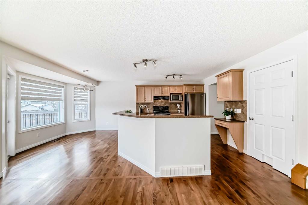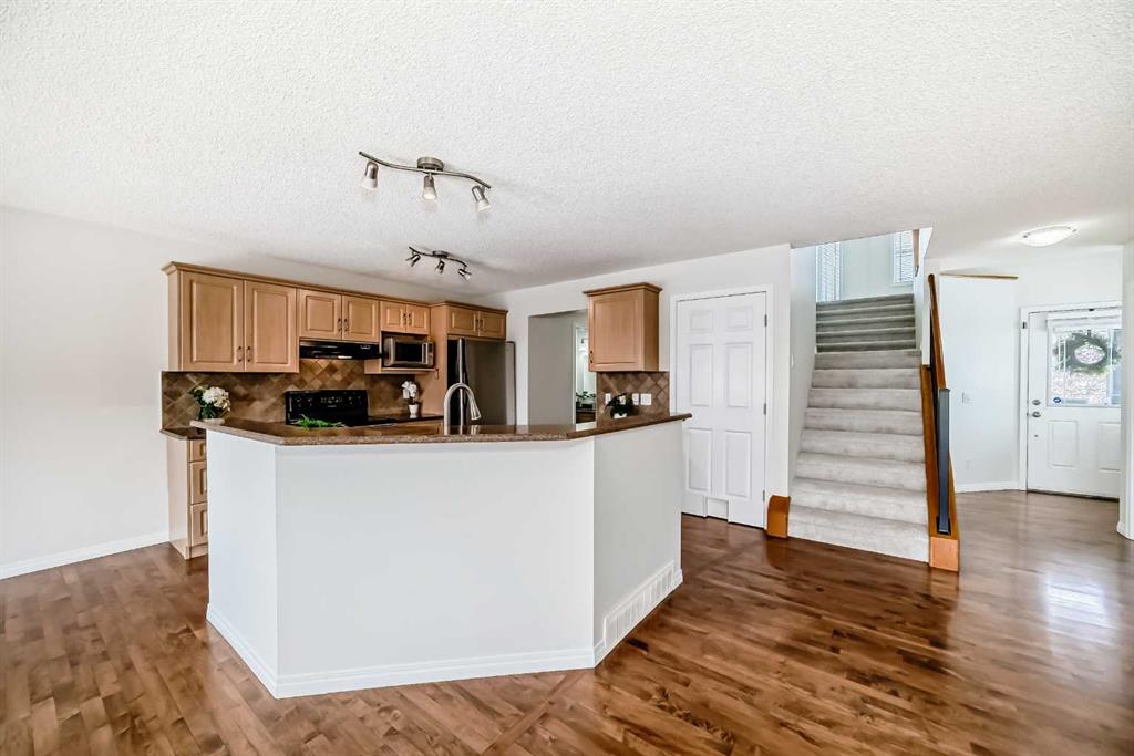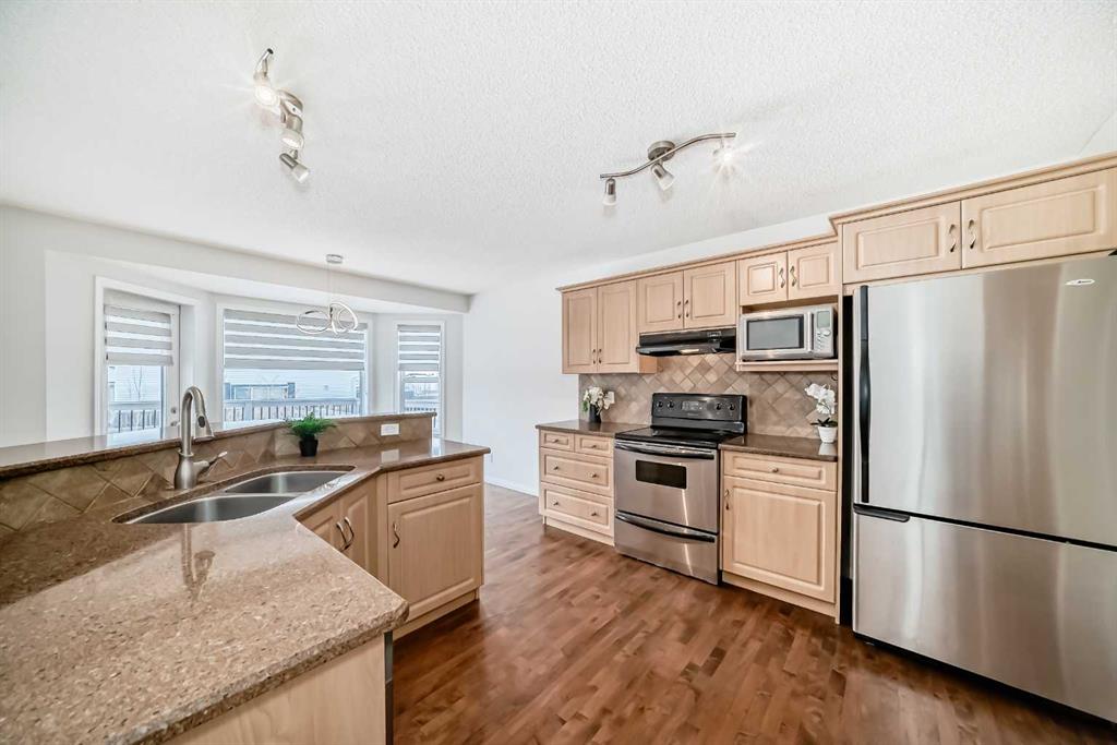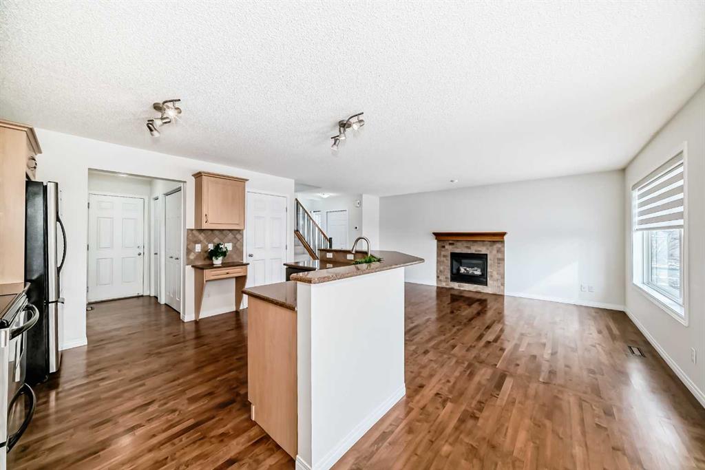 Corner Lot Gem I Move-In Ready | Heated Garage | Bonus Room Beautifully maintained corner lot home offering the perfect blend of comfort, style, and everyday functionality. Freshly painted and featuring brand-new carpets, this move-in-ready gem delivers 3 spacious bedrooms, 2.5 bathrooms, a large bonus room, and a double attached heated garage, perfect for modern family living (and Calgary winters). Step into a bright, open-concept main floor highlighted by rich hardwood flooring, a cozy gas fireplace, and an elegant kitchen designed to impress. Complete with granite countertops, stainless steel appliances, a central island, and convenient roll-out shelving, this space flows effortlessly into a sun-filled dining area, ideal for both daily living and entertaining. Upstairs, the generous bonus room offers the perfect setting for movie nights or a relaxing retreat. The primary suite is a true sanctuary, featuring a full ensuite and a walk-in closet with custom built-ins. Two additional bedrooms, a stylish 4-piece bath, and upstairs laundry with built-in cabinetry add convenience to everyday life. Thoughtfully upgraded throughout, this home includes granite counters in all bathrooms, a water softener, and a central vacuum system, details that elevate comfort and value. Outside, enjoy a beautifully landscaped backyard on a premium corner lot, complete with mature trees and a spacious two-tier deck with a gas line, ready for unforgettable summer BBQs and gatherings. Ideally located within walking distance to three schools, close to parks and scenic pathways, and just minutes from Fish Creek Park. Commuting is effortless with quick access to Stoney Trail and only a 6-minute drive to Costco.