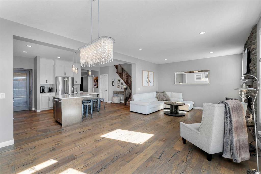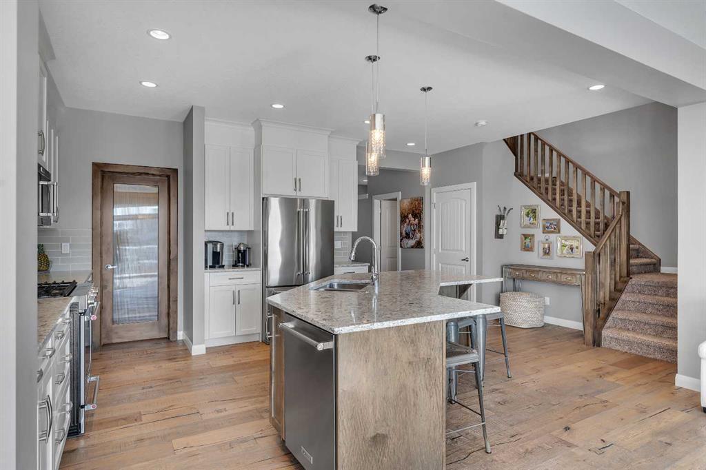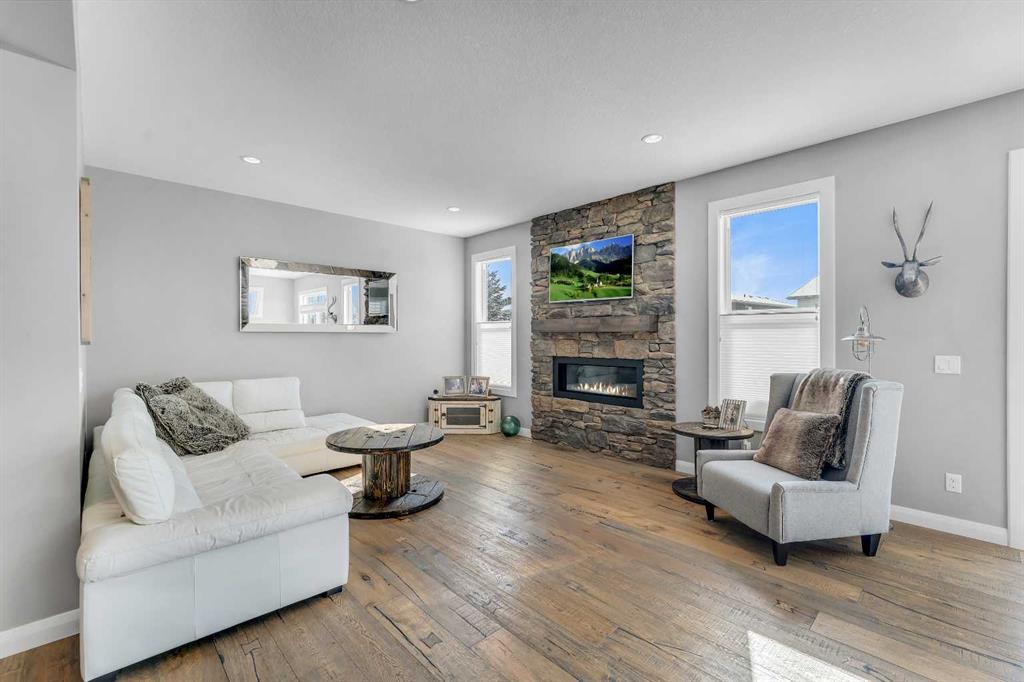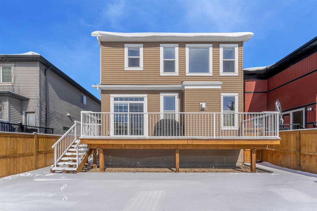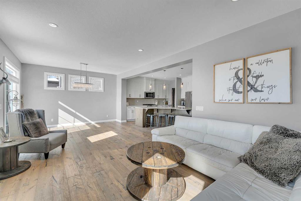 Welcome Home! This 2 story residence has so much to offer and features: 3,400+sq ft fully finished space w/ 5 bed, 3.5 bath + bonus | backing walking path + steps to rubber floor park | upgraded interior specifications | massive rear deck + landscaped | and so much more! All located in the developed Airdrie community 'Ravenswood' - with schools, amenities, access to major highways, green spaces & more making it perfect for growing families. Stepping inside you'll immediately notice the pride of ownership in this home. With the gleaming hardwood floors leading you throughout the main floor which offers living room, dining, large kitchen, walk thru pantry, mud room w/ built ins, and half bath. The kitchen features: beautiful white cabinets, granite countertops, large island with eating bar, plenty of storage space, SS appliances, walk thru pantry to mud room (perfect for bringing groceries home), cabinet to ceiling and more. Living room features a stunning stone fireplace, that extends to the ceiling giving the home a grand look. The main floor interior is sunlit with large windows, including sliding glass patio doors. Along with the high ceilings, this leaves the main floor feeling bright, airy and spacious - perfect for entertaining or the day to day life with the kids! Head upstairs to land in the large bonus room. Along with that, there are FOUR bedrooms upstairs! With the master being a great size with views of the green area behind the home being something that makes day to day living here that much more special. The master ensuite has everything you need and features: double vanity, toilet, stand alone tub, walk in shower. Along with that, you also have a large walk thru closet that leads to the upper laundry room - a well thought out layout by the builder! The basement is fully finished and features living space, bedroom, full bath, utility room and storage space. There is a concrete walkway on the side of home leading to poured concrete pad in the backyard. Along with that, the large deck. Most importantly, with a park the kids can play at only steps away, along with a walking path directly behind the home, this home truly checks all the boxes for what you can get in a home like this. Book your viewing today, before its gone!