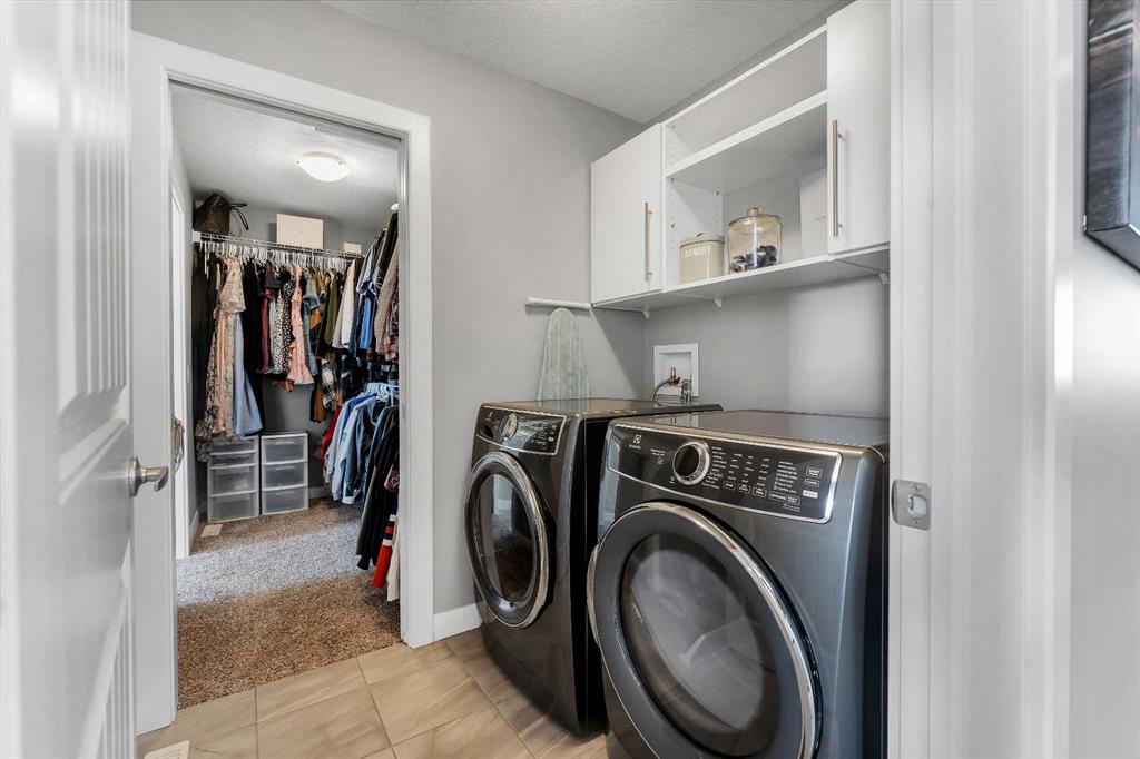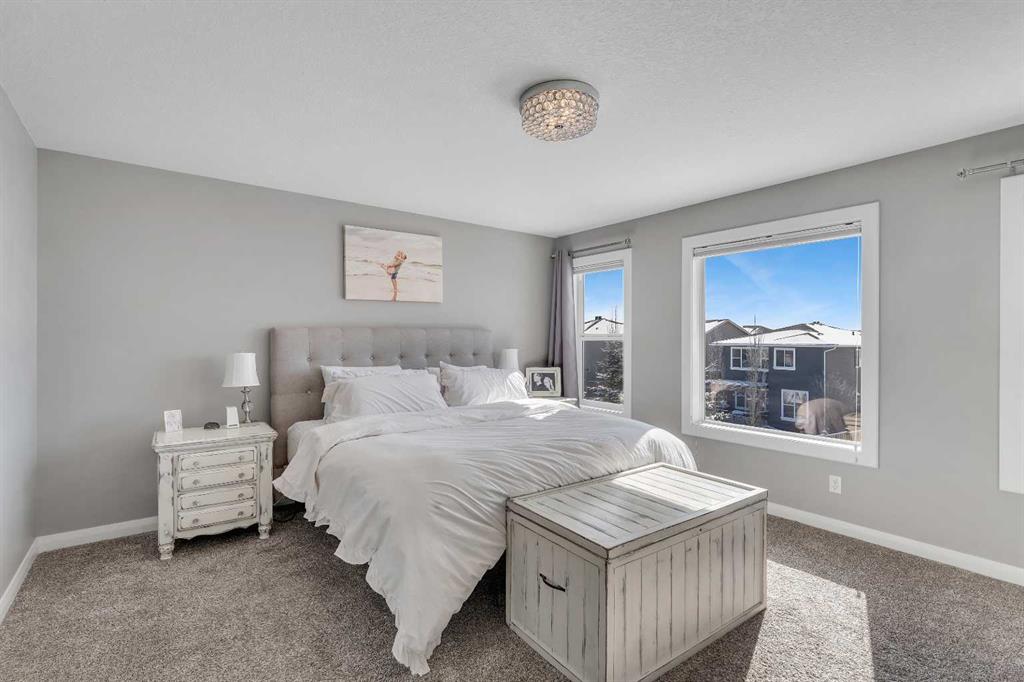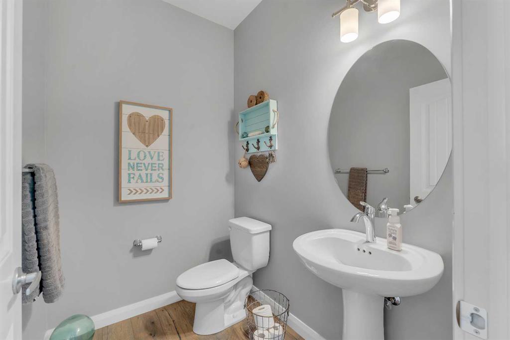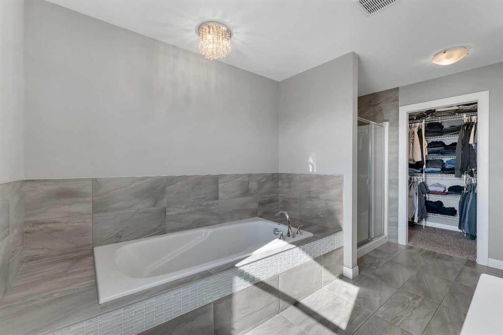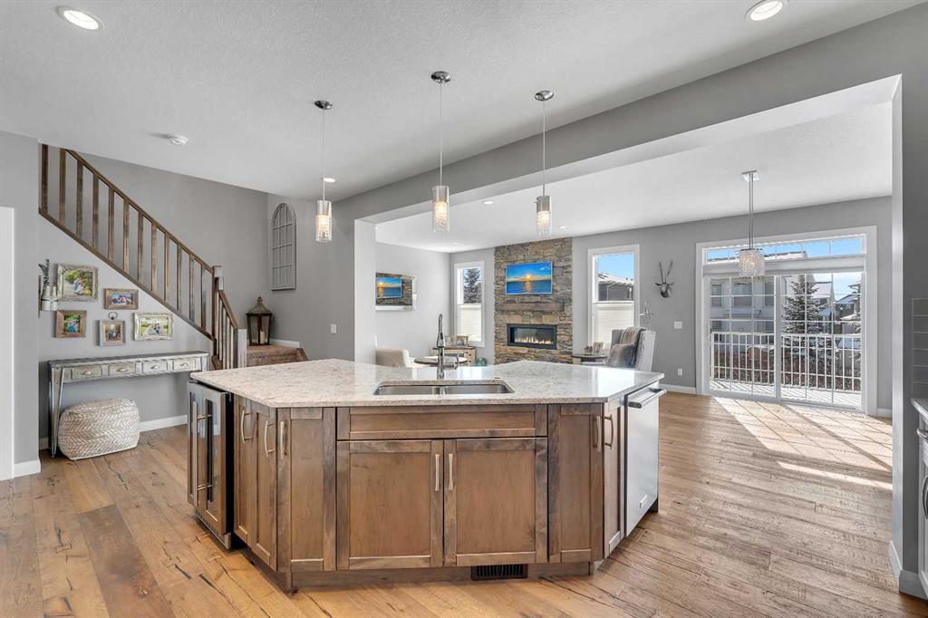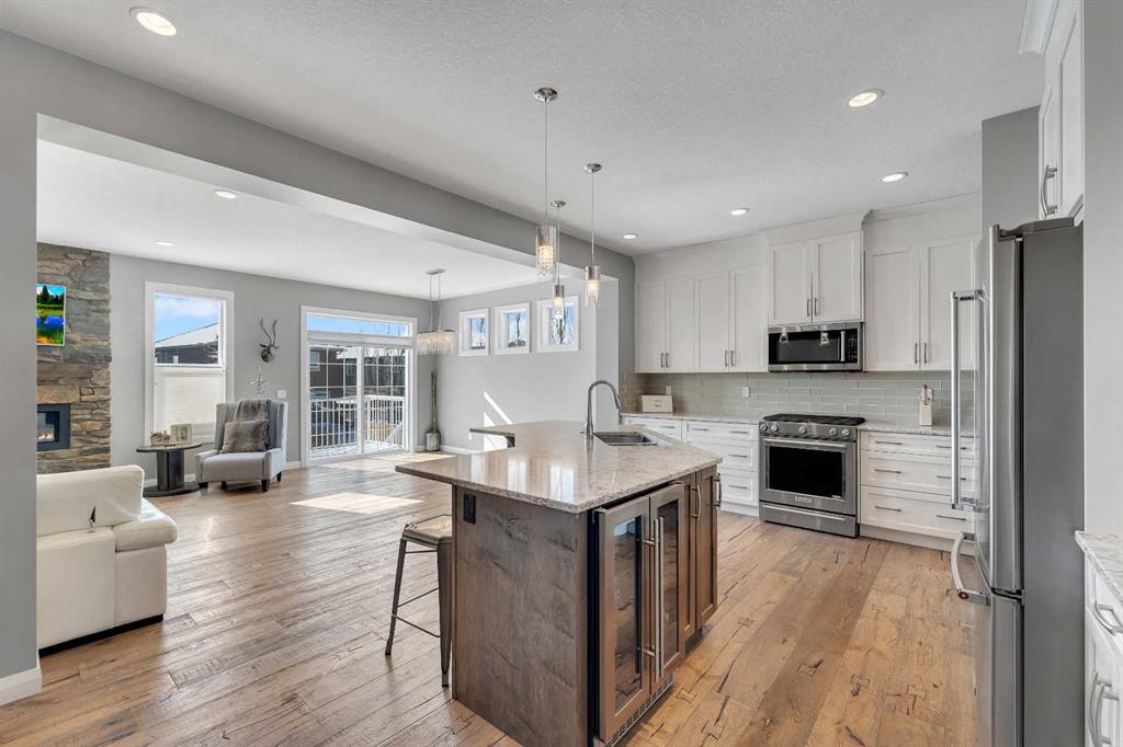 Welcome Home! This 2 story residence has so much to offer and features: 3,400+sq ft fully finished space w/ 5 bed, 3.5 bath + bonus | backing walking path + steps to rubber floor park | upgraded interior specifications | massive rear deck + landscaped | and so much more! All located in the developed Airdrie community 'Ravenswood' - with schools, amenities, access to major highways, green spaces & more making it perfect for growing families. Stepping inside you'll immediately notice the pride of ownership in this home. With the gleaming hardwood floors leading you throughout the main floor which offers living room, dining, large kitchen, walk thru pantry, mud room w/ built ins, and half bath. The kitchen features: beautiful white cabinets, granite countertops, large island with eating bar, plenty of storage space, SS appliances, walk thru pantry to mud room (perfect for bringing groceries home), cabinet to ceiling and more. Living room features a stunning stone fireplace, that extends to the ceiling giving the home a grand look. The main floor interior is sunlit with large windows, including sliding glass patio doors. Along with the high ceilings, this leaves the main floor feeling bright, airy and spacious - perfect for entertaining or the day to day life with the kids! Head upstairs to land in the large bonus room. Along with that, there are FOUR bedrooms upstairs! With the master being a great size with views of the green area behind the home being something that makes day to day living here that much more special. The master ensuite has everything you need and features: double vanity, toilet, stand alone tub, walk in shower. Along with that, you also have a large walk thru closet that leads to the upper laundry room - a well thought out layout by the builder! The basement is fully finished and features living space, bedroom, full bath, utility room and storage space. There is a concrete walkway on the side of home leading to poured concrete pad in the backyard. Along with that, the large deck. Most importantly, with a park the kids can play at only steps away, along with a walking path directly behind the home, this home truly checks all the boxes for what you can get in a home like this. Book your viewing today, before its gone!