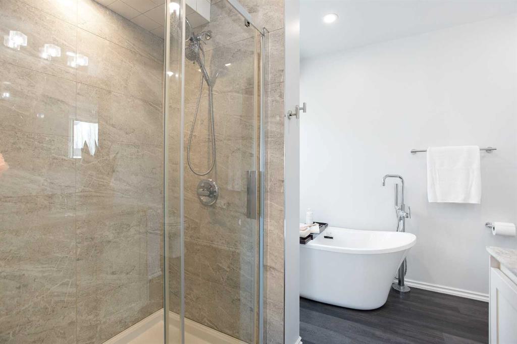 Welcome home to this impeccably maintained,2,785 SF two-storey residence in the desirable community of Thorburn. This impressive five-bedroom home greets you with a grand, welcoming foyer featuring dual closets before opening into a spacious and modern interior. The stunning open-concept main floor is anchored by warm vinyl plank flooring that flows seamlessly into an inviting, light-filled living room. Here, a cozy gas fireplace, elegantly flanked by custom built-in cabinets, serves as the perfect focal point for quiet evenings. The heart of the home is a true chef’s kitchen, boasting an abundance of cabinetry and counter space, a large center island with a breakfast bar, and a functional corner pantry. Adjacent to the kitchen, the generous dining room accommodates everything from intimate dinners to large gatherings, all while offering a lovely view of the private backyard. For added convenience, a stylish two-piece powder room is tucked discreetly around the corner on this level. The upper floor is designed for both relaxation and functionality, beginning with a massive bonus room illuminated by numerous windows. The serene primary retreat serves as a private oasis, featuring a spa-like five-piece ensuite complete with a granite vanity, a heated towel warmer, a soothing soaker tub, and a separate walk-in tiled shower. Two additional oversized bedrooms, a full four-piece bathroom, and a dedicated laundry space complete this level, ensuring the morning rush is a breeze for the whole family. The lower level expands your living space even further. This fully developed basement offers a massive recreation room perfect for movie nights or a home gym, along with two more large bedrooms and a modern three-piece bathroom, complete with another tiled shower. Whether you need space for guests, teenagers, or a home office, this level provides incredible versatility. Outside, your living area extends to a lovely rear deck overlooking a fully fenced backyard with established gardens, offering a peaceful escape for summer hosting. Parking is never an issue here; the property features an oversized, heated double attached garage, a spacious driveway wide enough to park 3 vehicles, and rear lane access to a dedicated parking pad—providing ample room for your boat and RV. A detached garage could be added into the backyard with City of Airdrie approval, as you can see from the neighbours on the block. Located on a quiet street just minutes from Genesis Place, Bert Church High School and East lake, scenic walking paths, and all essential amenities, this home offers the perfect balance of luxury and location. With its generous proportions and pristine condition, this property will not last long. Book your showing today to experience this Thorburn gem for yourself!