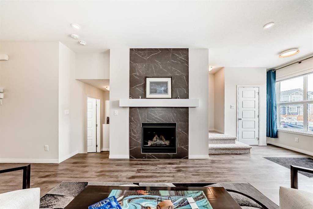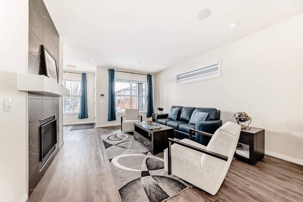 Formerly a Trico Showhome, this home is distinguished by it's extensive upgrades and intentional design, where every detail has been purposefully designed to deliver a refined and effortless living experience. Perfectly positioned in a growing and highly desirable community, this residence is move-in ready and showcases the very best of modern living. The main level features an airy open-concept layout anchored by a sophisticated kitchen complete with stainless steel appliances, quartz countertops, pantry and under-cabinet lighting. The space flows effortlessly into a sun-filled dining area and an inviting living room highlighted by a sleek gas fireplace, ideal for both everyday comfort and entertaining.