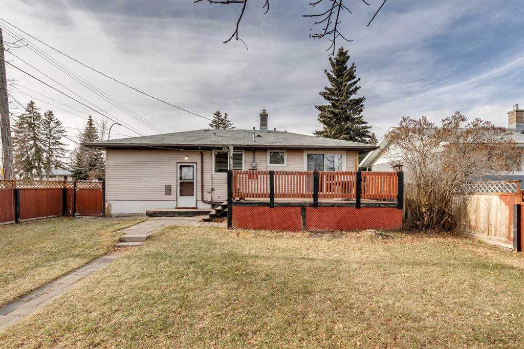 Welcome to a solid bungalow on a fantastic corner lot in Glenbrook—perfectly positioned with paved lanes on two sides and just steps from the community centre. This home offers a practical layout that feels open and comfortable the moment you step inside, while fresh paint provides a clean slate for any new homeowner. A small entry area keeps jackets and shoes organized before you move into the bright living room, where large windows, a detailed ceiling design, and a wraparound flow toward the dining area help the space feel connected and social. The dining room includes a built-in cabinet for added function, and the kitchen features a pass-through opening to the living room plus extra storage. Down the hallway, the primary bedroom provides plenty of room and closet space, while the second bedroom features sliding doors leading directly to the back deck—great for airflow and easy outdoor access. A shared 4-piece bathroom completes the main floor.