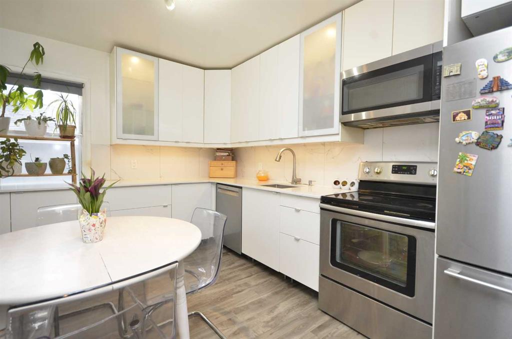 An updated kitchen with modern cabinets and ample storage space