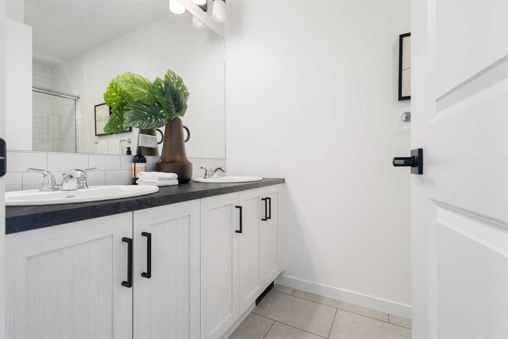 Upstairs, the primary suite offers vaulted ceilings, a private ensuite with dual sinks, and a convenient laundry area. Two additional bedrooms provide plenty of space and storage for family or guests.
