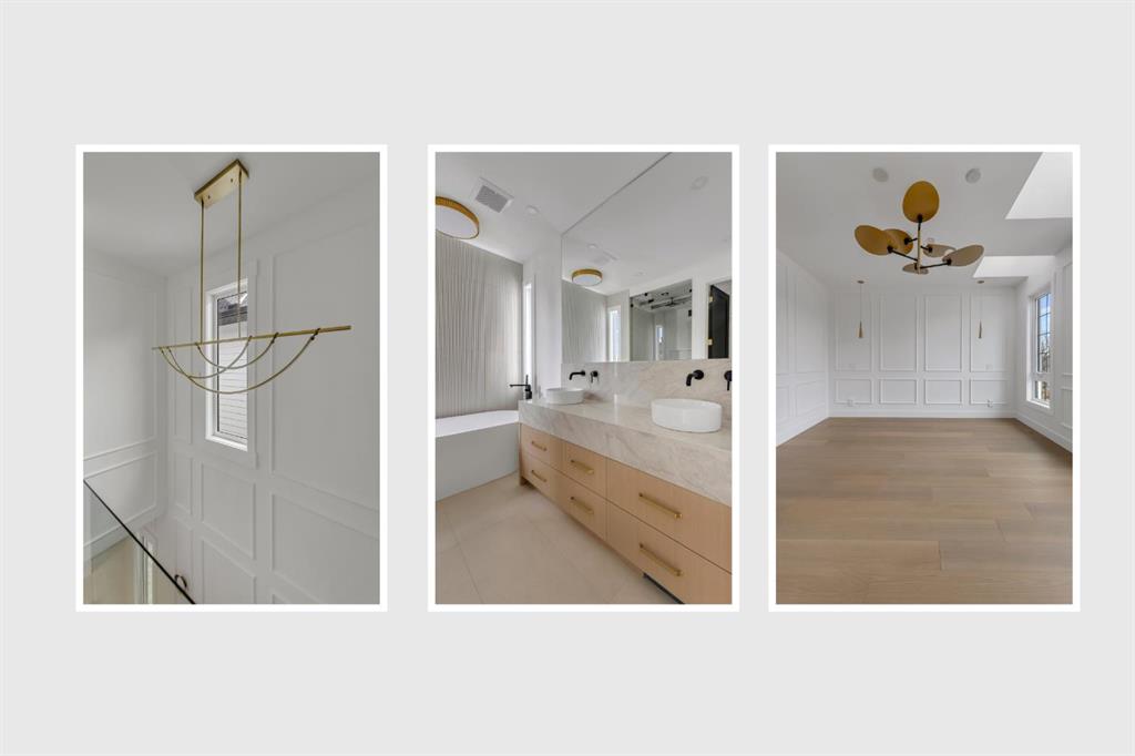 Upstairs, the primary retreat offers a true sense of escape with vaulted ceilings and elevated design. The spa-inspired ensuite can be tailored with your choice of finishes, featuring a deep soaker tub, large tiled shower, and refined detailing throughout. A custom walk-in closet completes the room. Two additional bedrooms, a stylish 4-piece bath, and a versatile desk nook provide space for growing families, work, or creativity. A generous laundry room with sink and quartz counters, along with wide hallways and additional storage, enhances functionality across the upper level.