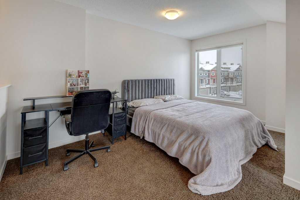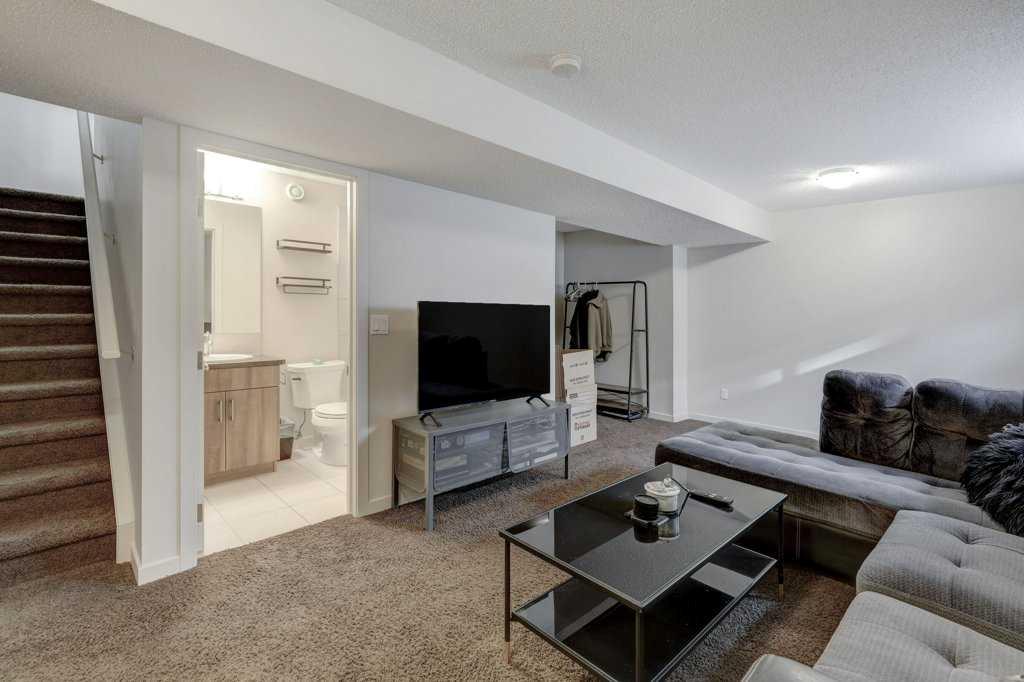 Gorgeous END unit townhome facing a green space and perfectly located in the heart of Auburn Bay! You are greeted with gleaming hardwood floors as you enter, through the living room & kitchen area with plenty of windows for loads of natural sunlight! Bright and Sunny! Functional kitchen with plenty of cabinet & counter space, mosaic tiled backsplash, raised breakfast bar & stainless-steel appliances. The second level features a master bedroom with walk in closet & ensuite bath, a second bedroom & another full bathroom. Up to the third level & you will find a huge, sunny loft/bonus room area that can be used as a rec room, bedroom, etc. The lower level is also fully finished with a rec room and another full bathroom as well as some storage space and laundry area. Front patio area is perfect for BBQing & entertaining! This home is steps to the school and a short trip to all the areas amenities, Deerfoot & Stoney Trails, transit, hospital, parks, pathways, theatre AND the lake!