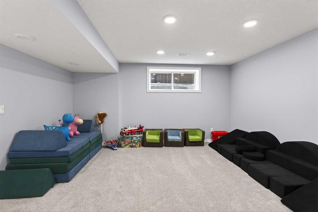 The fully finished basement is designed for both comfort and functionality, featuring upgraded cozy carpet, spray foam insulation in the exterior walls, and added ceiling insulation for extra warmth and quiet. Down here, you’ll find a spacious rec room, a beautiful full bathroom with custom cabinetry and a shower niche, and two large bedrooms complete with wainscotting and custom closets.
