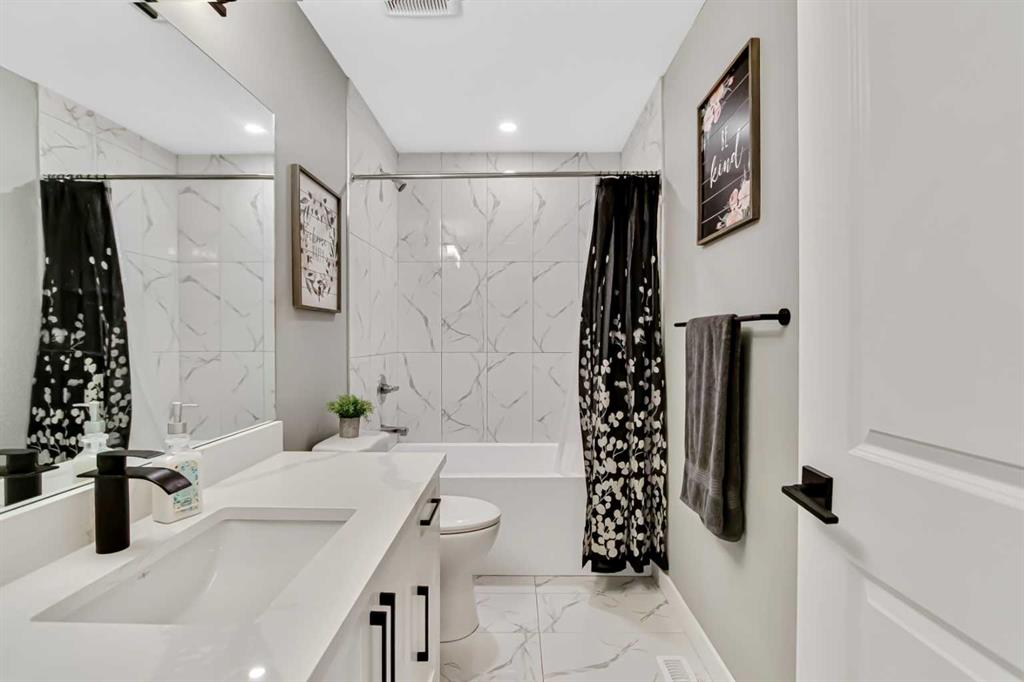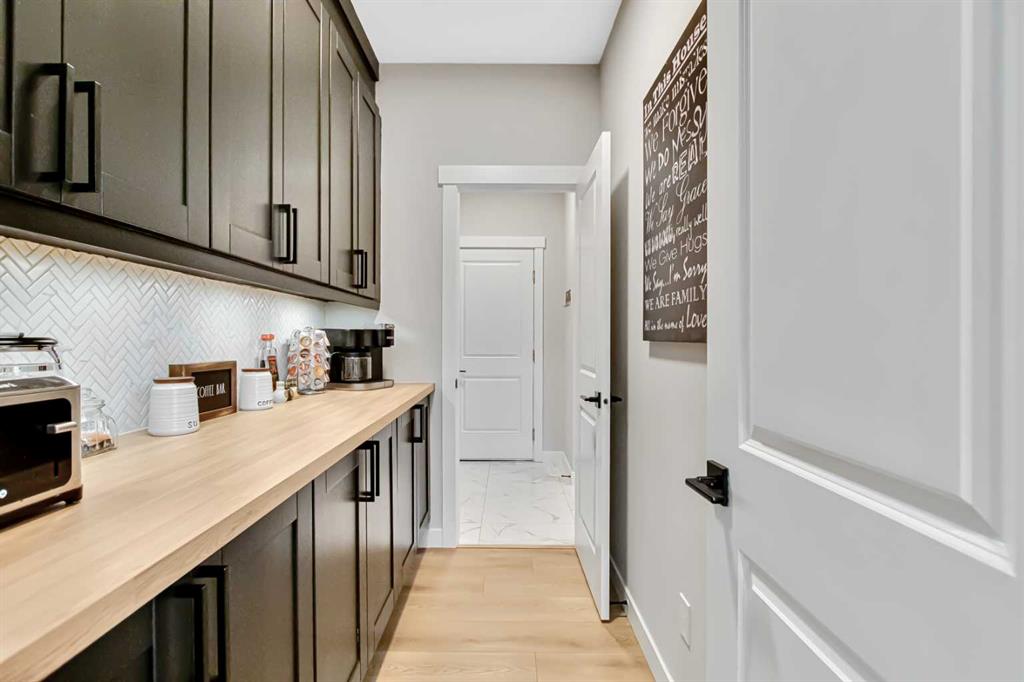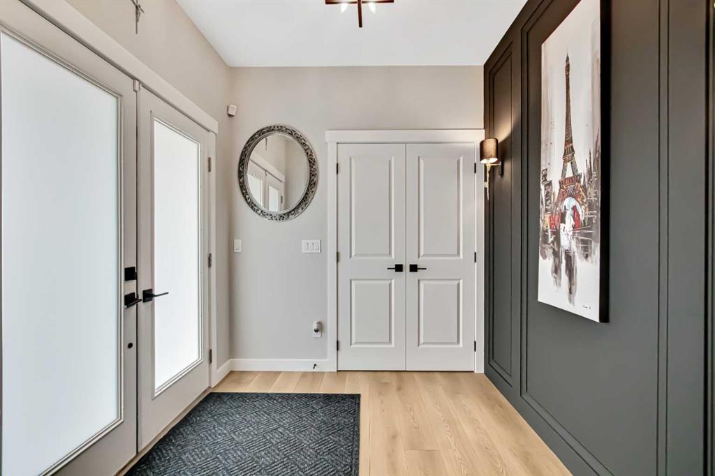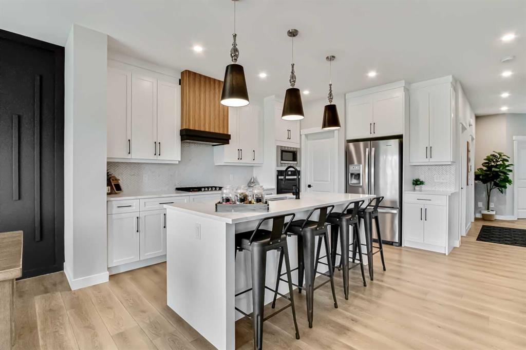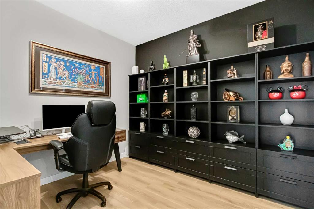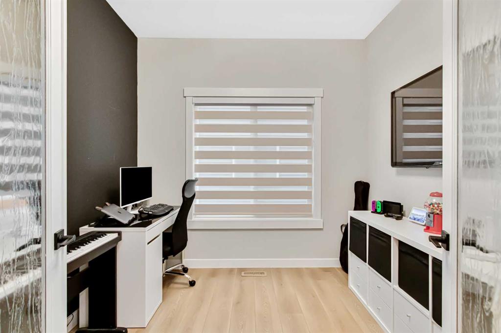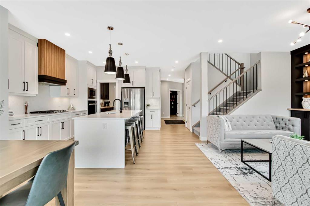 Inside, the main level offers beautifully defined yet connected living zones. A dedicated home office provides quiet focus, while the enclosed flex/media room with French doors is ideal for kids study, gaming, or additional lounge space. The inviting family room with modern fireplace flows seamlessly into the gourmet kitchen - complete with built in appliances, gas cooktop, quartz countertops and a walk through pantry - creating the perfect setting for both daily life and entertaining. Upstairs, the primary suite is a private retreat featuring a spa inspired ensuite with jetted tub, rain head shower and generous walk in closet. Three additional bedrooms provide flexibility for growing families - one with its own private ensuite, while the remaining two share a well appointed full bathroom. A bright bonus room overlooking the pond offers the perfect space for movie nights or relaxed family time, and the upper level laundry room adds everyday convenience. The fully finished basement is designed for entertaining, showcasing a large recreation area, custom wet bar, games space, fifth bedroom, full three piece bathroom and convenient side entrance access - offering versatility for guests or extended family. Additional highlights include custom mudroom built ins, heated garage with epoxy flooring, central air conditioning, water softener and elevated finishes throughout.