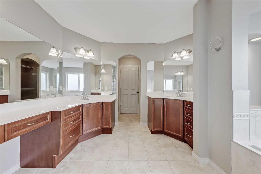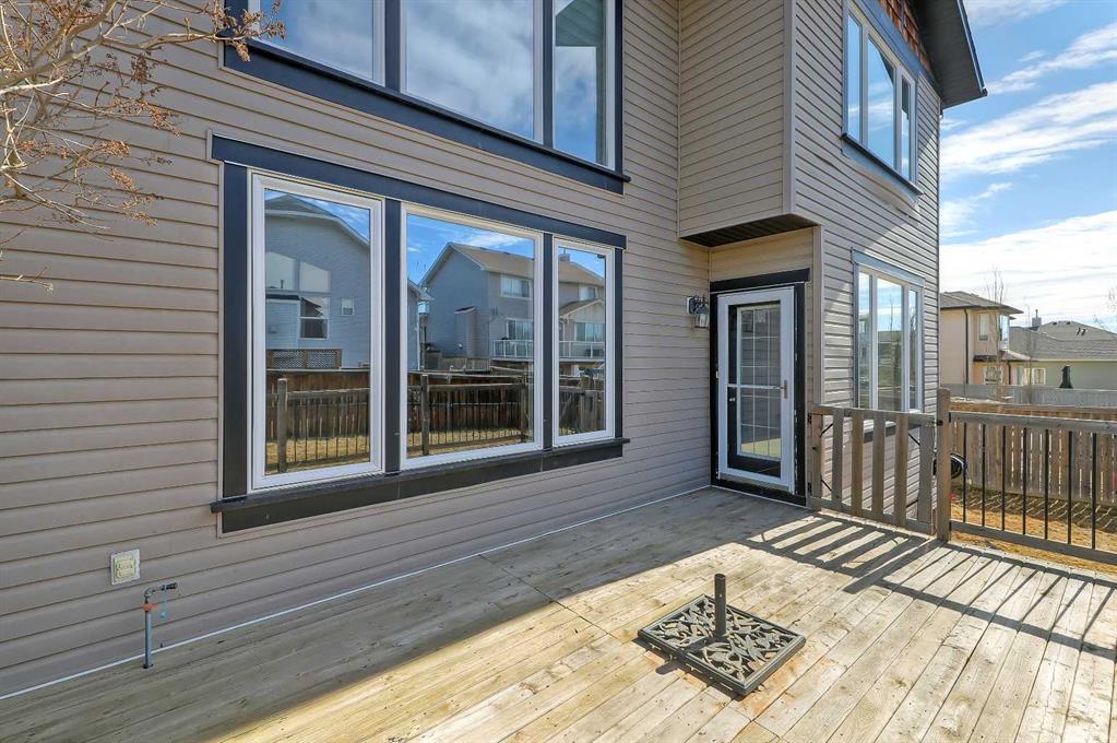 Located on a corner lot with a West-facing backyard in the established lakeside community of Chestermere, this spacious two-storey home features over 3,900 sq. ft of total living space, including 6 bedrooms (4 beds up!), a fully developed basement, and an enormous triple heated attached garage with epoxy floors! This home is ideal for large or multi-generational families, professionals working from home, or buyers seeking generous space both inside and out. The main floor features 9-ft ceilings and tiled flooring throughout. A bright front office with double glass doors and LVP flooring provides a dedicated workspace. The open living area features an 18-ft vaulted ceiling and a gas fireplace with a tile surround and mantel. A large formal dining room with a feature ceiling detail and hidden lighting sits nearby. The kitchen includes maple cabinetry, stainless steel appliances, black quartz countertops, a large walk-in pantry, and a secondary eating area overlooking the backyard. A discreet powder room and a dedicated laundry room with built-in cabinetry and sink complete the main level. From here, easily access the oversized heated triple garage with epoxy flooring. Upstairs, LVP flooring continues throughout. The spacious primary bedroom features a 6-pc ensuite with a tiled walk-in shower with a bench and dual shower heads, a jetted soaker tub with a waterfall feature, dual vanities with a built-in makeup station, a skylight, and a separate water closet. The ensuite connects to a large walk-in closet with built-in shelving. Three additional bedrooms, a full bathroom, a large bonus room, and extra linen storage complete the upper floor. The fully finished basement expands the home’s versatility with a large recreation room and a wet bar featuring quartz countertops and a full-height tile backsplash. Two additional bedrooms with walk-in closets and large windows are located on this level, along with a full bathroom featuring a custom-tiled shower with body jets, a rainfall showerhead, and a glass enclosure. Mechanical features include two furnaces, two hot-water tanks, and two air-conditioning units. The sunny West-facing backyard includes a large deck with a gas line for a BBQ. Chestermere offers a unique lakeside lifestyle just minutes from Calgary. Residents enjoy year-round access to Chestermere Lake, including beaches, walking pathways, water sports, and winter recreation. Families benefit from nearby schools, including Prairie Waters Elementary School and Chestermere Lake Middle School. Chestermere Public Library is just close by. Everyday amenities, including grocery stores, restaurants, and services, are available within the city, while quick access to Calgary makes commuting simple. Multiple parks, playgrounds, and recreational facilities throughout the community support an active and family-friendly lifestyle.