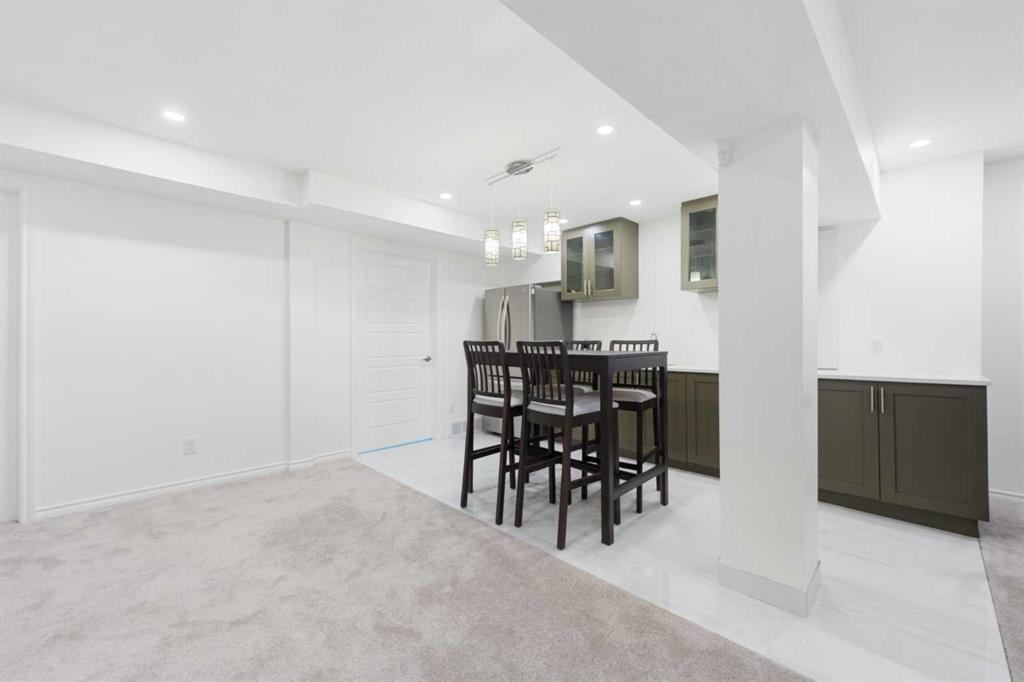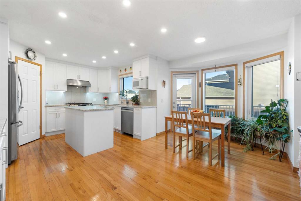This exceptional home showcases a wide range of upgrades, including central air conditioning, triple-glazed windows, Hardie Board siding, a newer roof, top-of-the-line windows covering, and a premium Vent-A-Hood fan—just to name a few. With so many enhancements, this home truly must be experienced in person to fully appreciate its quality, design, and craftsmanship. The main floor features a bright, open-concept layout with a centrally positioned chef-inspired kitchen, a welcoming front formal living room, and a stunning family living room with soaring high ceilings, a spacious dining area, and a sun-filled breakfast nook overlooking the backyard. The kitchen is beautifully appointed with quartz countertops, a gas stove, premium stainless steel appliances, a pantry, and elegant lighting, including newly added pot lights. A main floor office/den adds flexibility for work or study. Upstairs, you’ll find three generously sized bedrooms, including a spacious primary retreat featuring a sunny southeast-facing bay window, a large walk-in closet, and a renovated 4-piece ensuite complete with a soaker tub and a separate standing shower. Two additional well-sized bedrooms and another full bathroom complete the upper level. As you move through the home, the soaring ceilings and abundance of windows create a bright and airy atmosphere filled with natural light. The fully renovated basement offers incredible additional living space, featuring a kitchenette/bar area, a spacious bedroom, and a full bathroom with direct access from the bedroom, allowing it to function as a private ensuite—perfect for guests or teenagers seeking their own space. The large recreation area is ideal for entertaining, and the ample built-in cabinetry provides excellent storage solutions. The home sits on a corner lot, allowing for abundant sunlight throughout the day. The beautiful southeast-facing backyard offers the potential to add an RV parking pad and features a durable Duradek, perfect for low-maintenance outdoor enjoyment. The current owners have meticulously maintained the home and invested approximately $215,000 in renovations, reflecting pride of ownership throughout. Located in a highly desirable area, this home falls within the school bus zones for Tom Baines School (Junior High) and Edgemont School (K–5), with Sir Winston Churchill High School as the designated high school—one of the most sought-after schools in Calgary NW. This move-in-ready home combines space, style, and premium upgrades in an unbeatable location. Call today to book your private viewing!